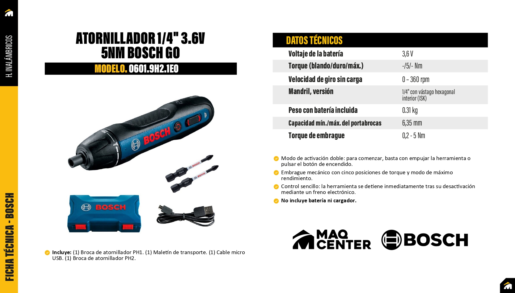 Atornillador bosch 3.6v 5nm bosch go - 0601.9h2.1e0