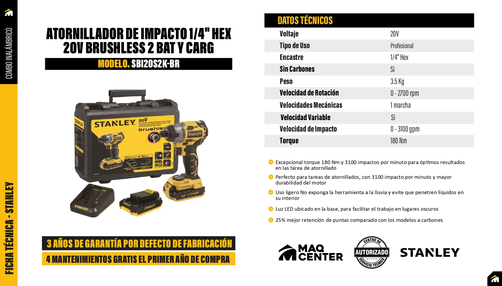 Atornillador de impacto inalambrico brushless 20v sbi20s2k