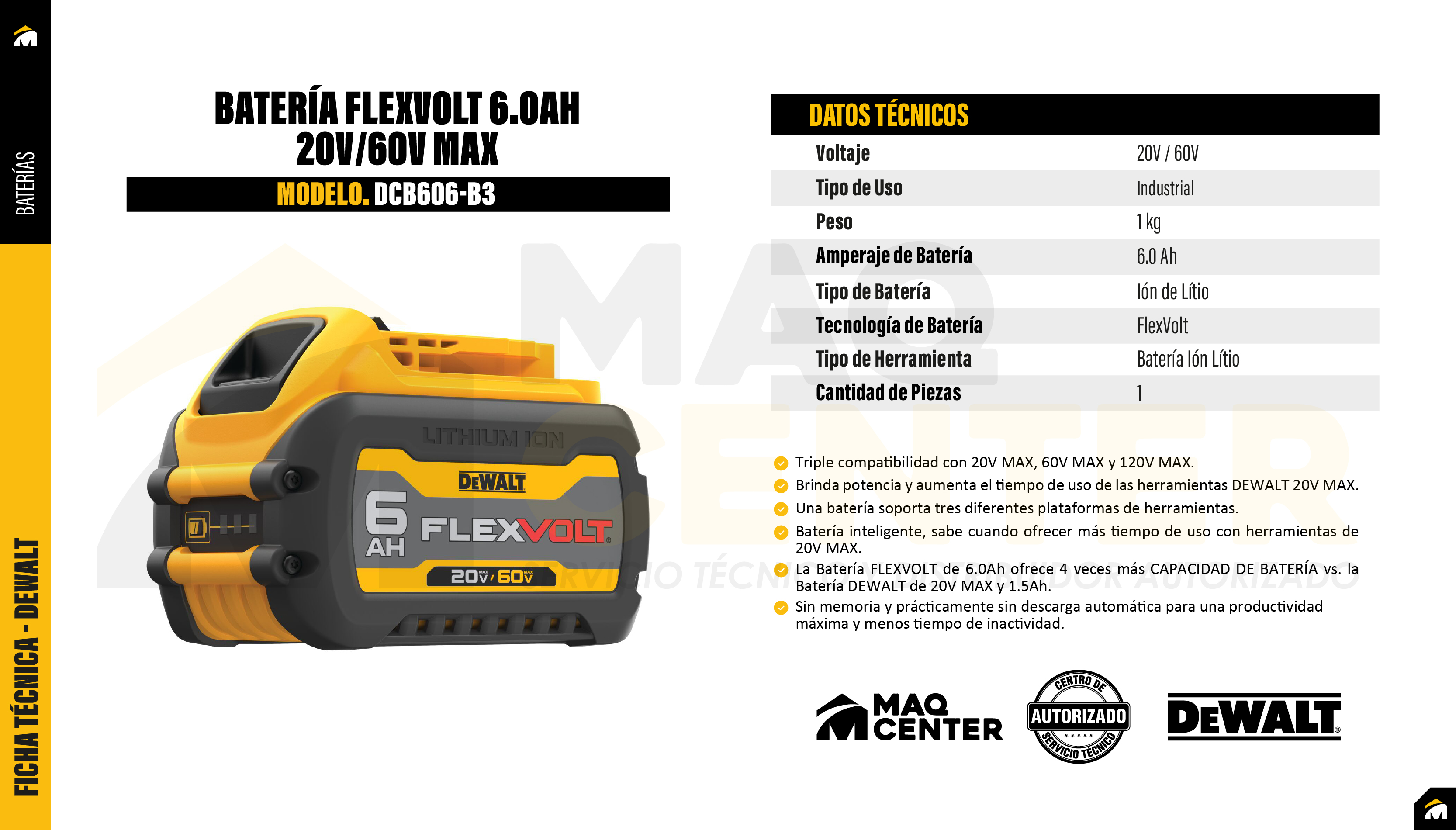 Batería flexvolt 6.0ah 20v/60v max dewalt dcb606-b3