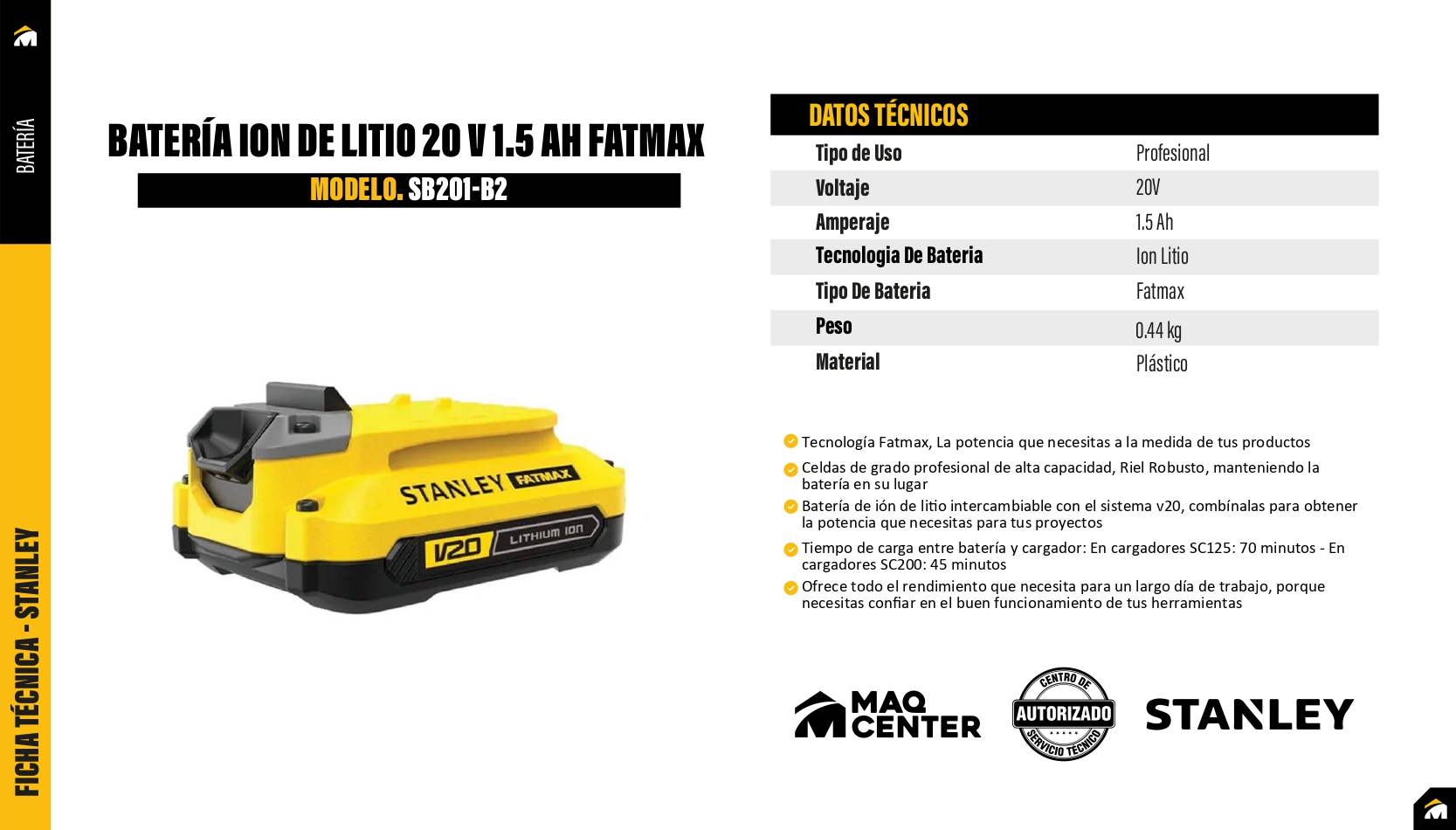 Batería ion de litio 20 v 1.5 ah fatmax stanley sb201-b2