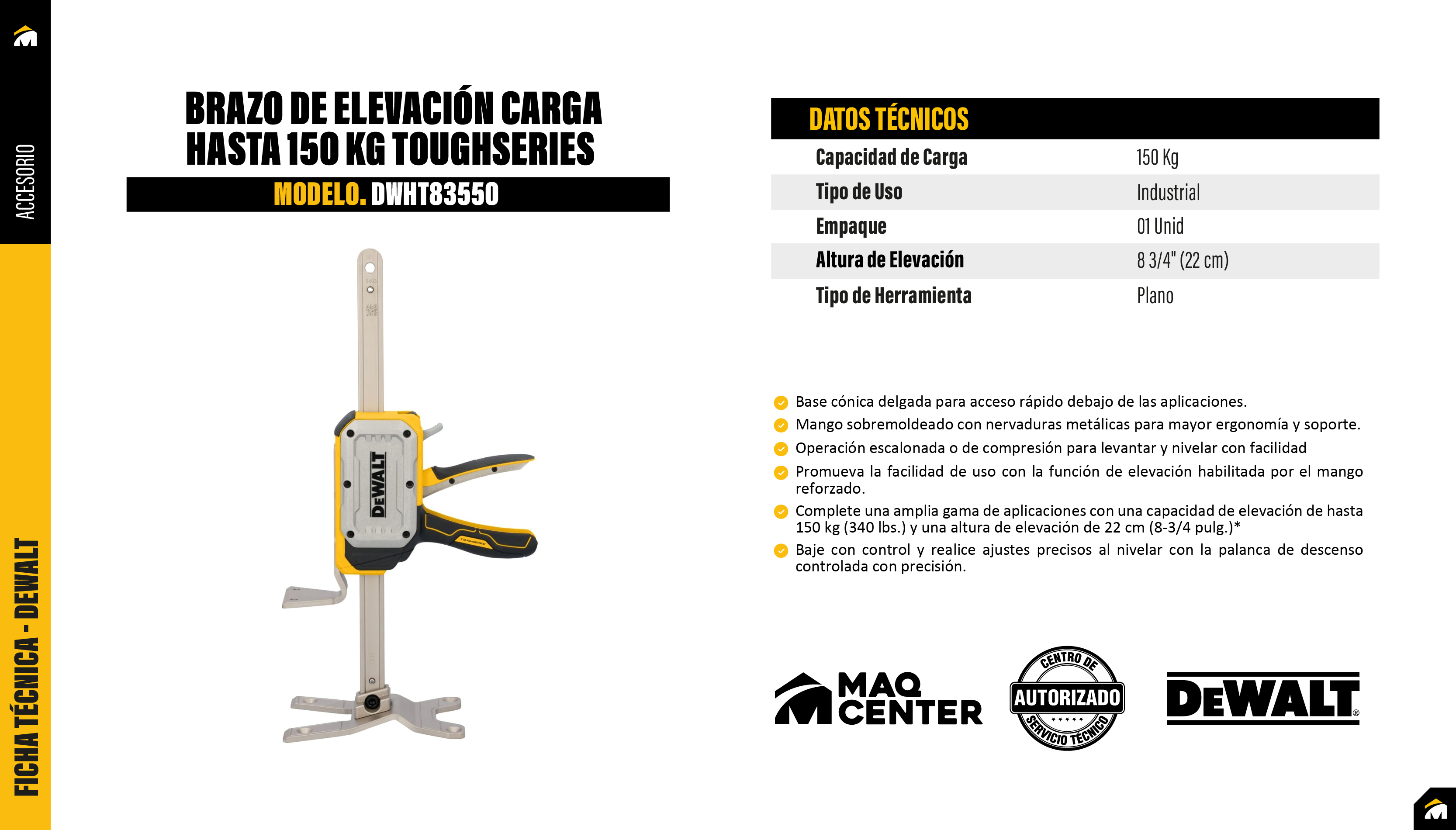Brazo de elevación carga hasta 150 kg toughseries dewalt dwht83550