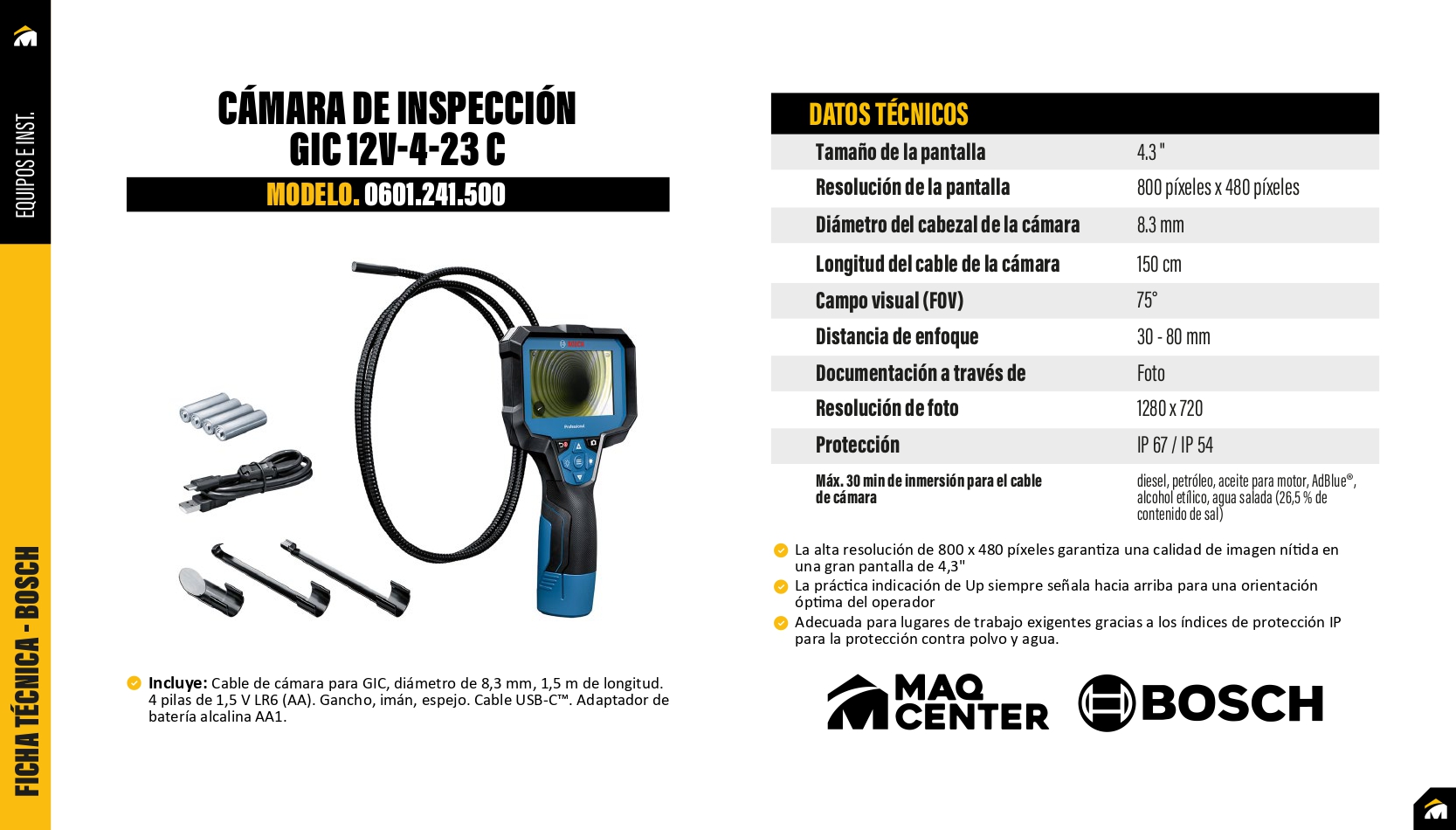 Cámara de inspección bosch gic 12v-4-23 c – 0601.241.500