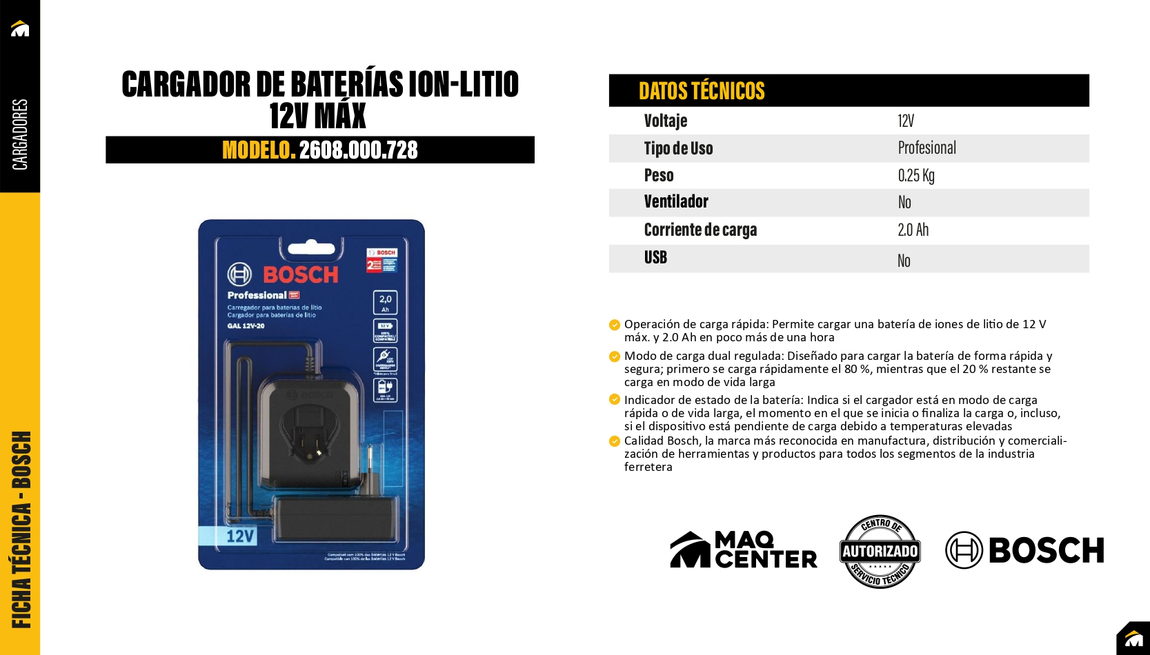 Luces de indicación y compatibilidad plena con las baterías de iones de litio de 12 V máx. de Bosch.
