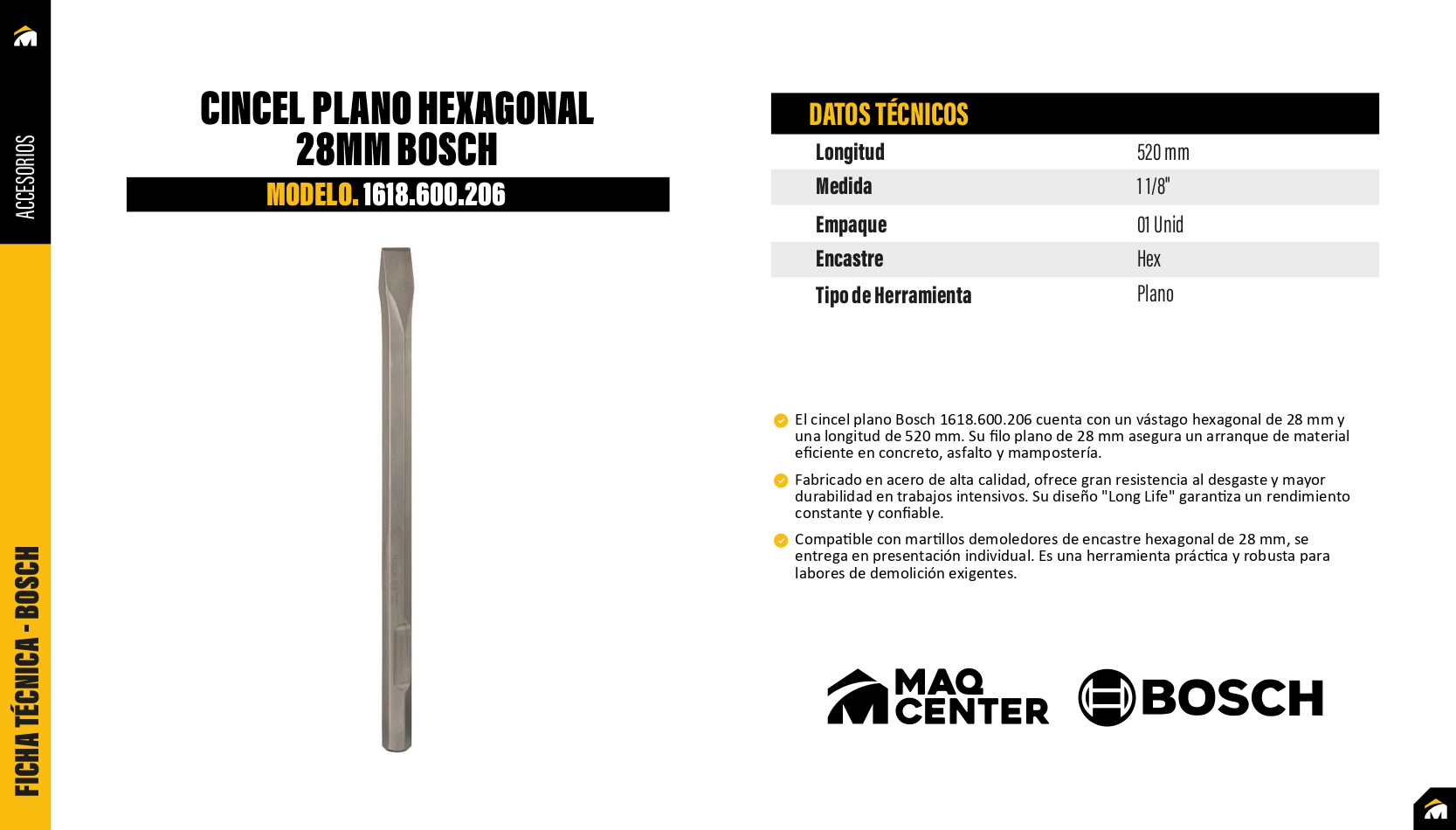 Cincel plano hexagonal 28mm bosch 1618.600.206