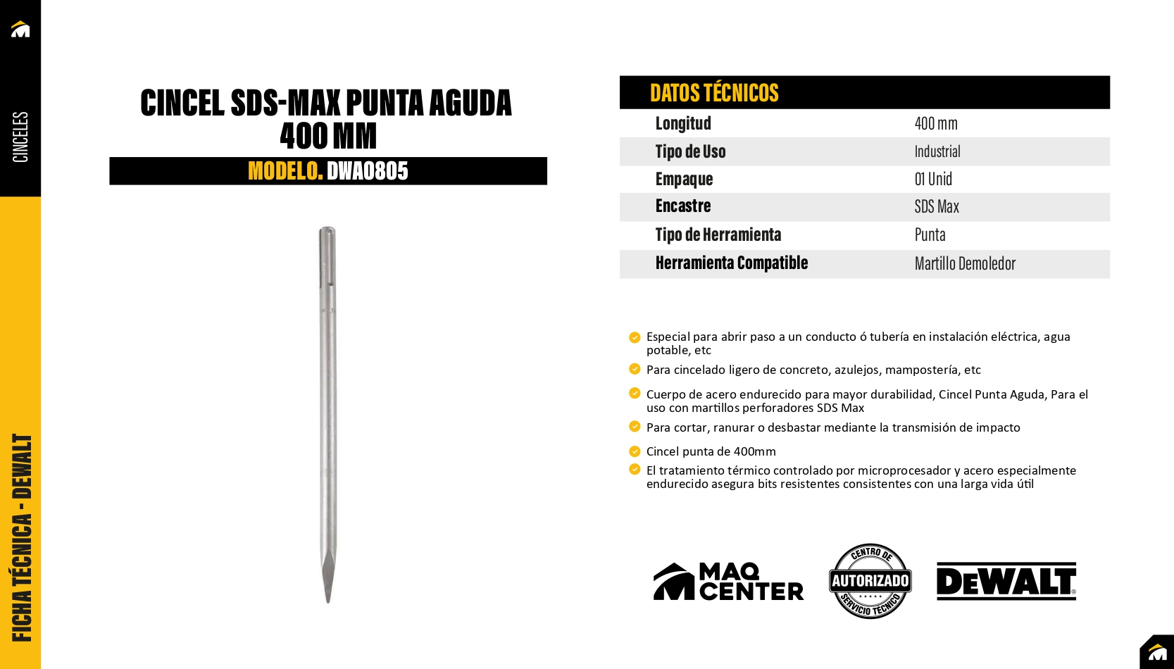 Cincel sds-max agudo 400 mm dewalt dwa0805