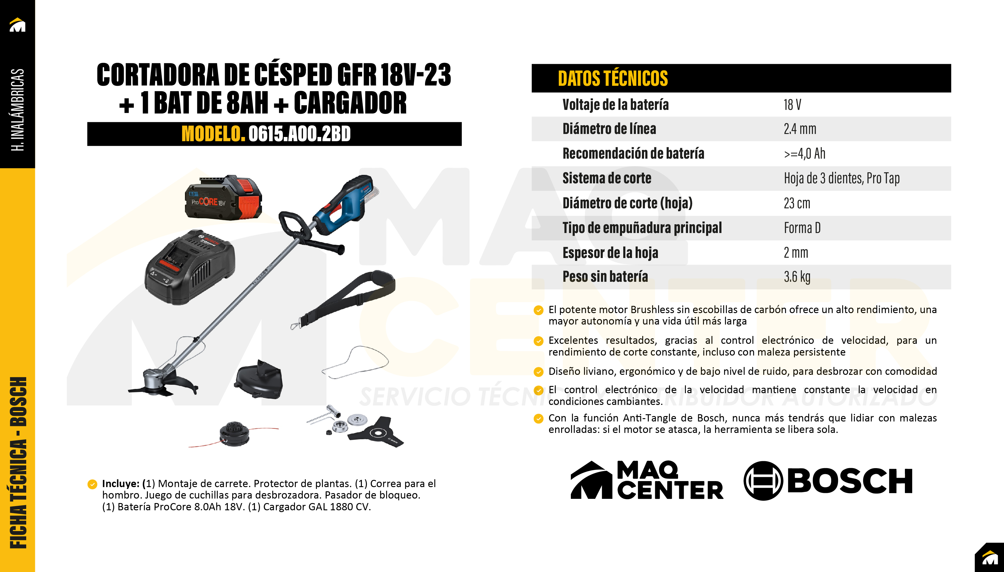 Desbrozadora bosch gfr 18v-23 + bat 8ah + carg – 0615.a00.2bd