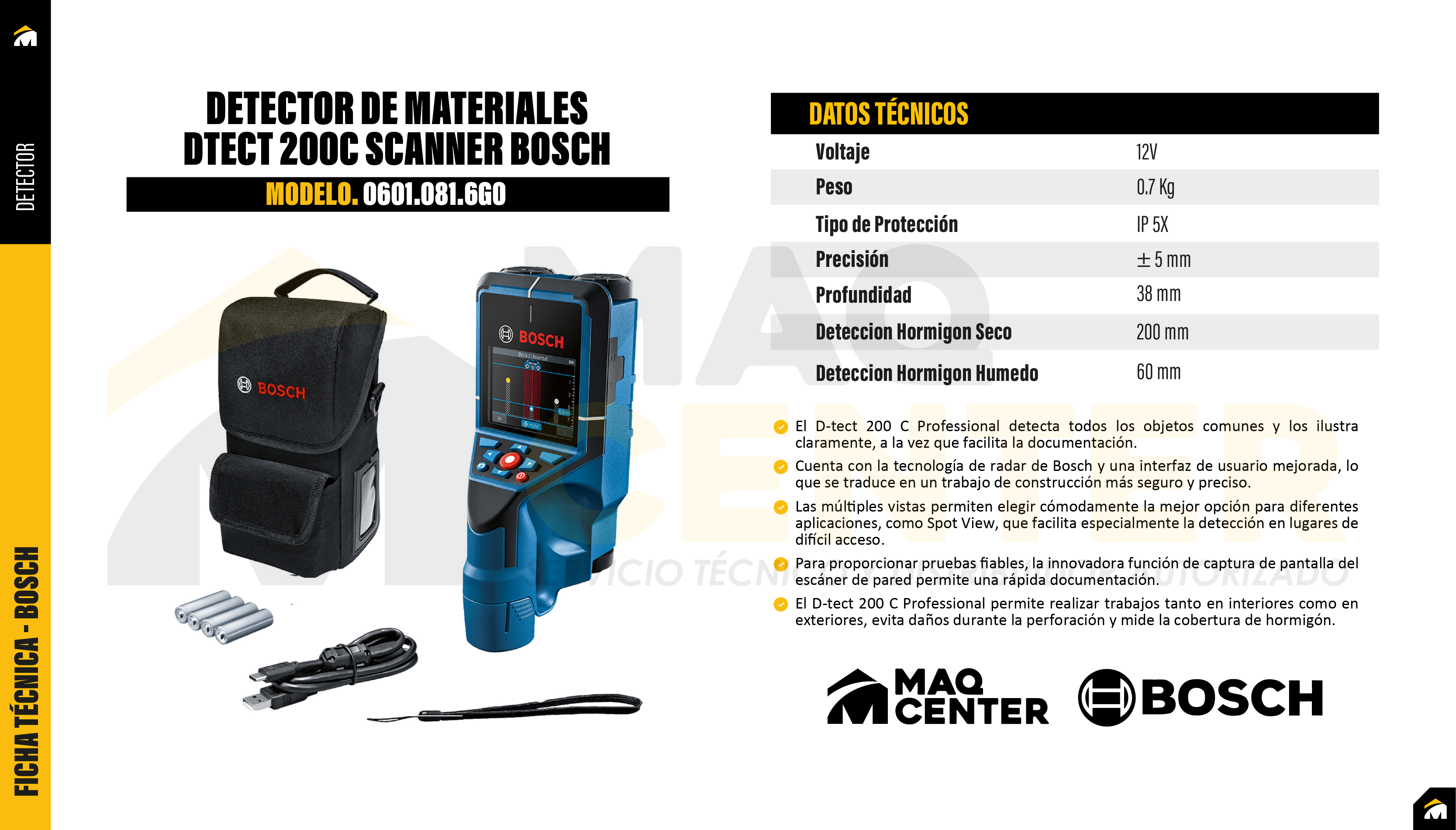 Detector de materiales dtect 200c scanner bosch 0601.081.6g0-000