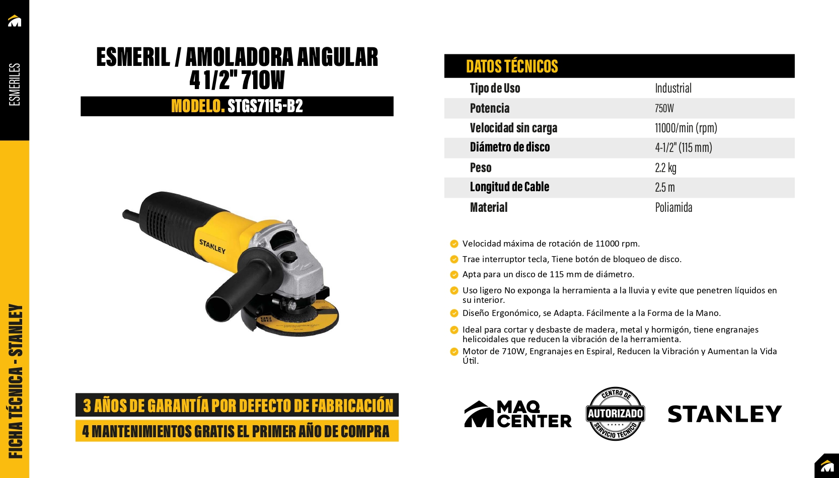 Esmeril angular 4.5" 750w - stgs7115