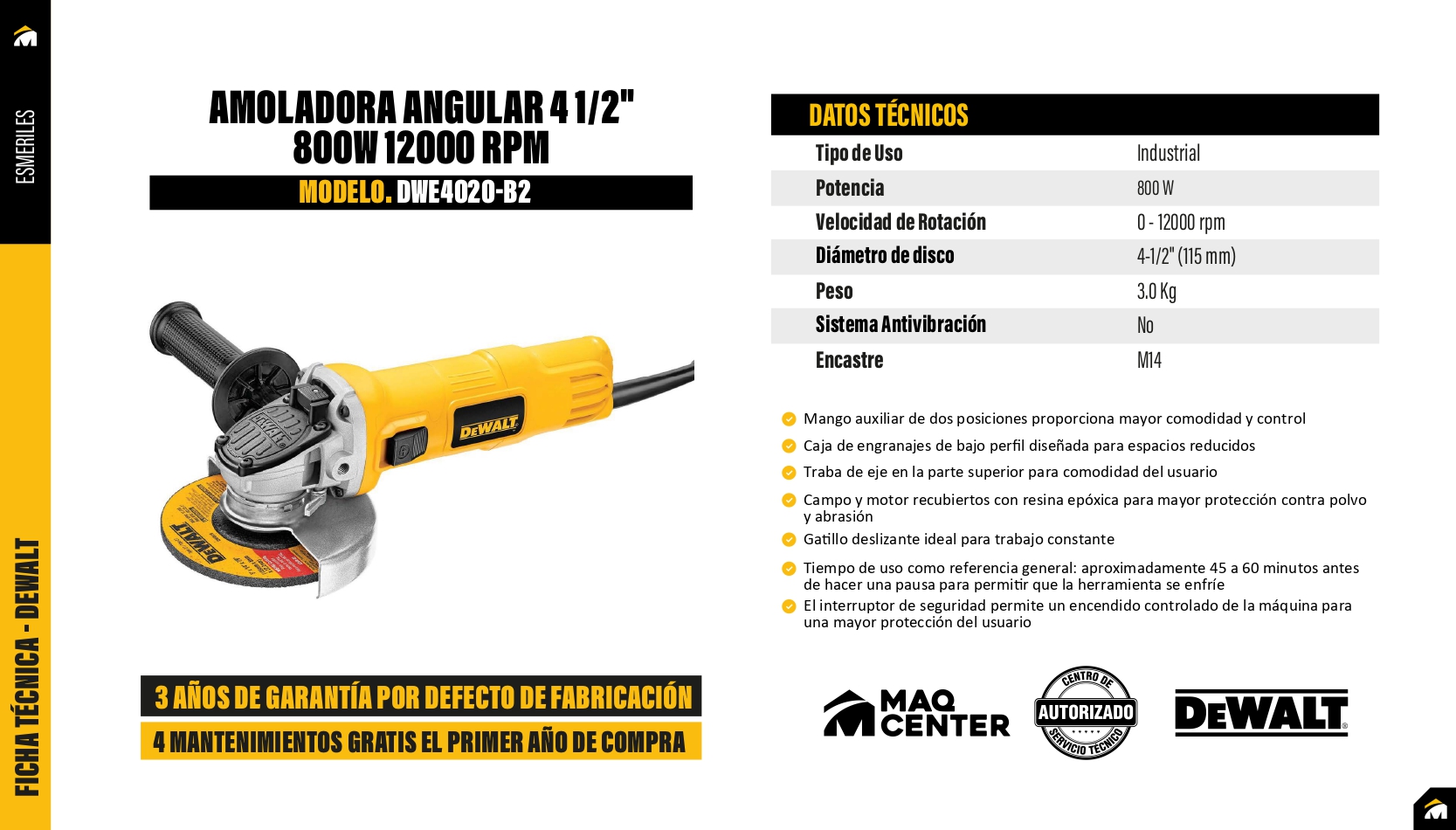 Esmeril angular de 4 -1/2 800w - dwe4020-b2