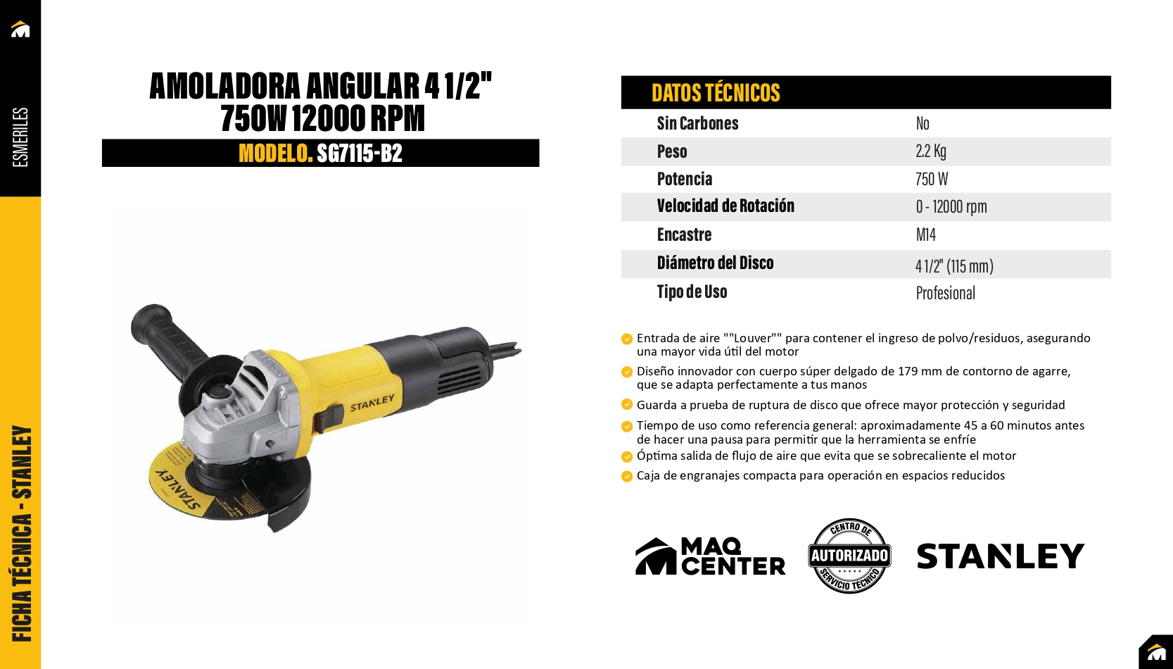 Esmeril anuglar profesional 4-1/2" 750w stanley sg7115