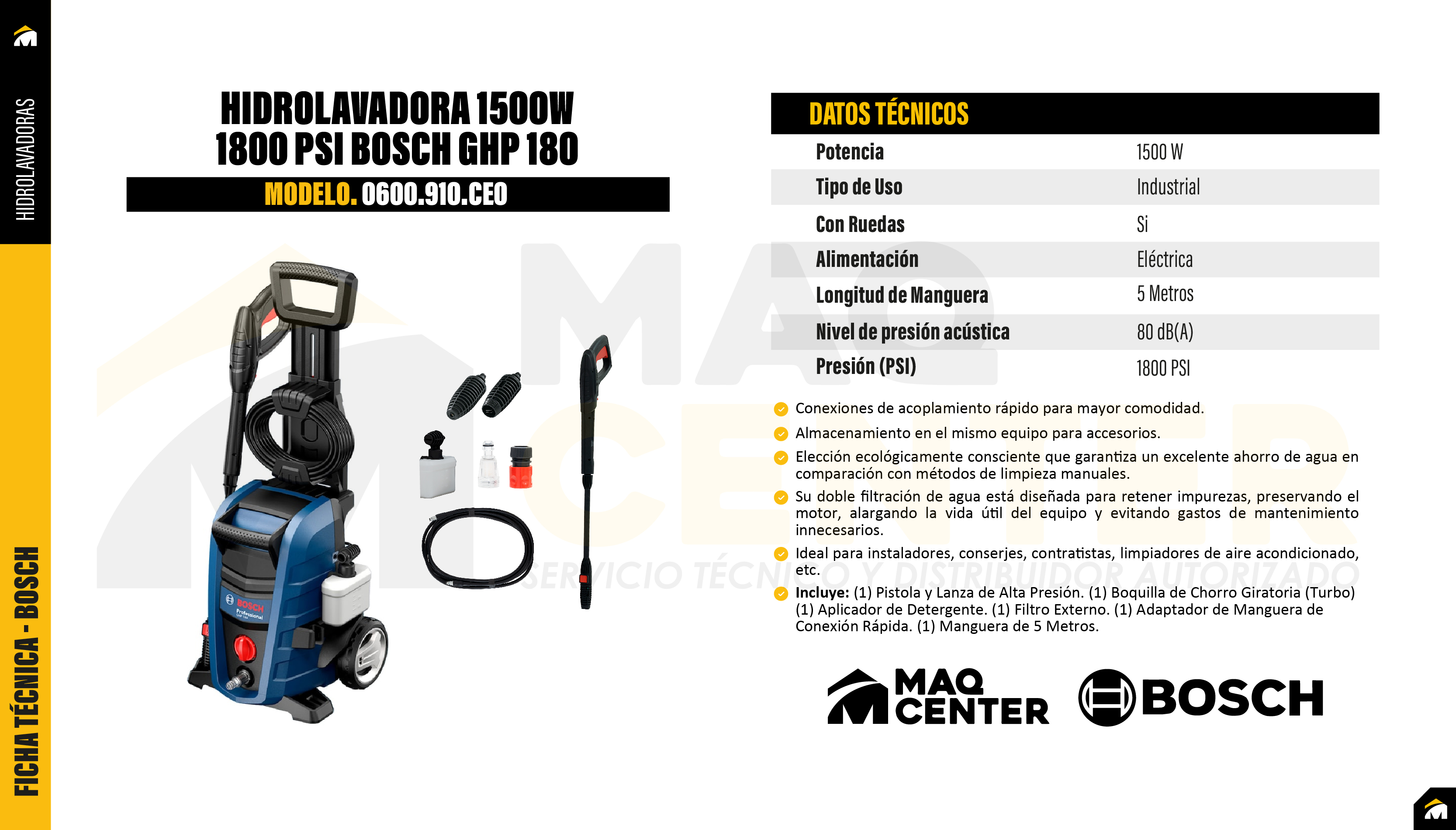 Hidrolavadora bosch 1500w 1800 psi ghp 180 - 0600.910.ce0