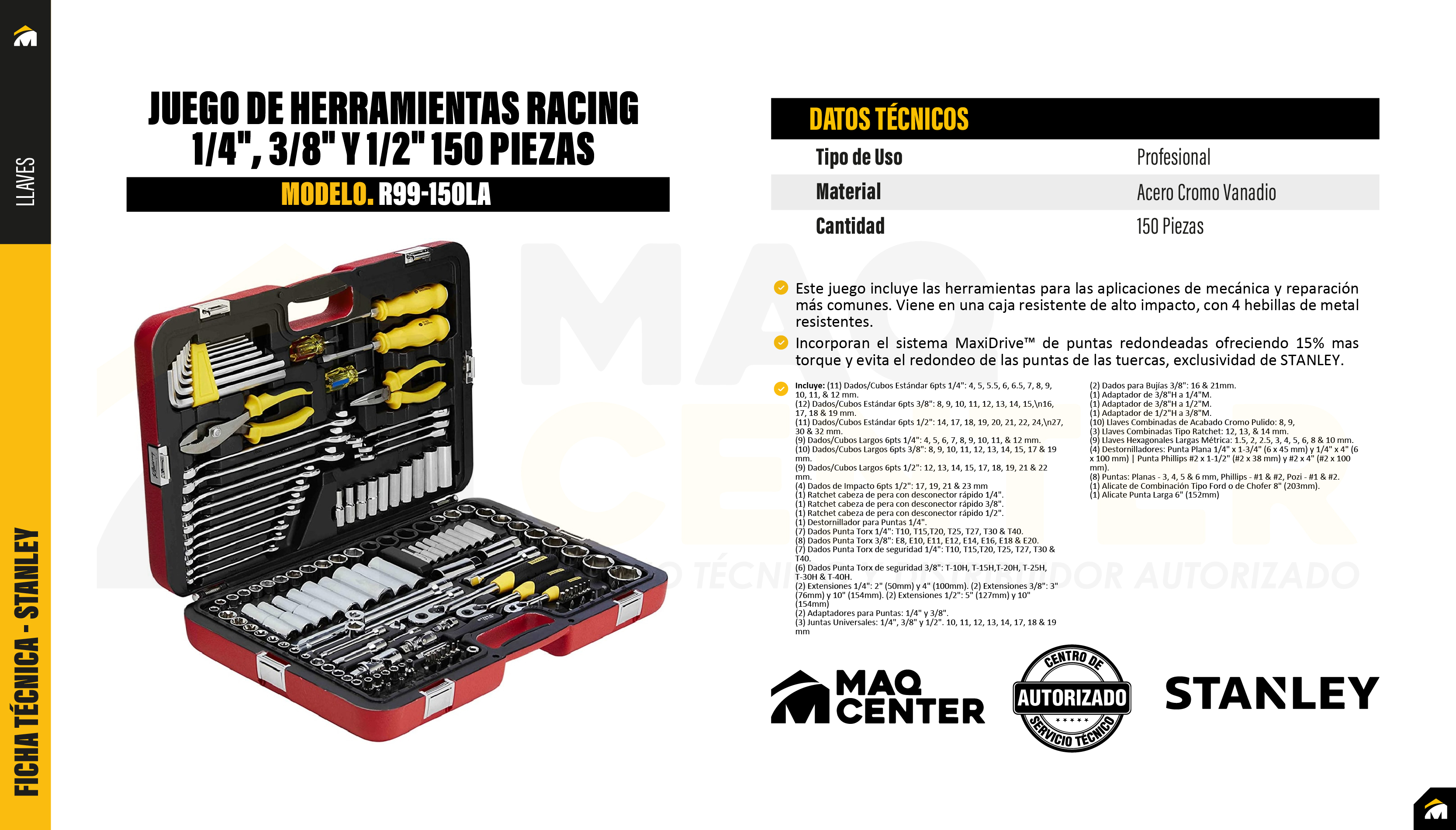 Incorporan el sistema MaxiDrive™ de puntas redondeadas ofreciendo 15% mas torque y evita el redondeo de las puntas de las tuercas, exclusividad de STANLEY