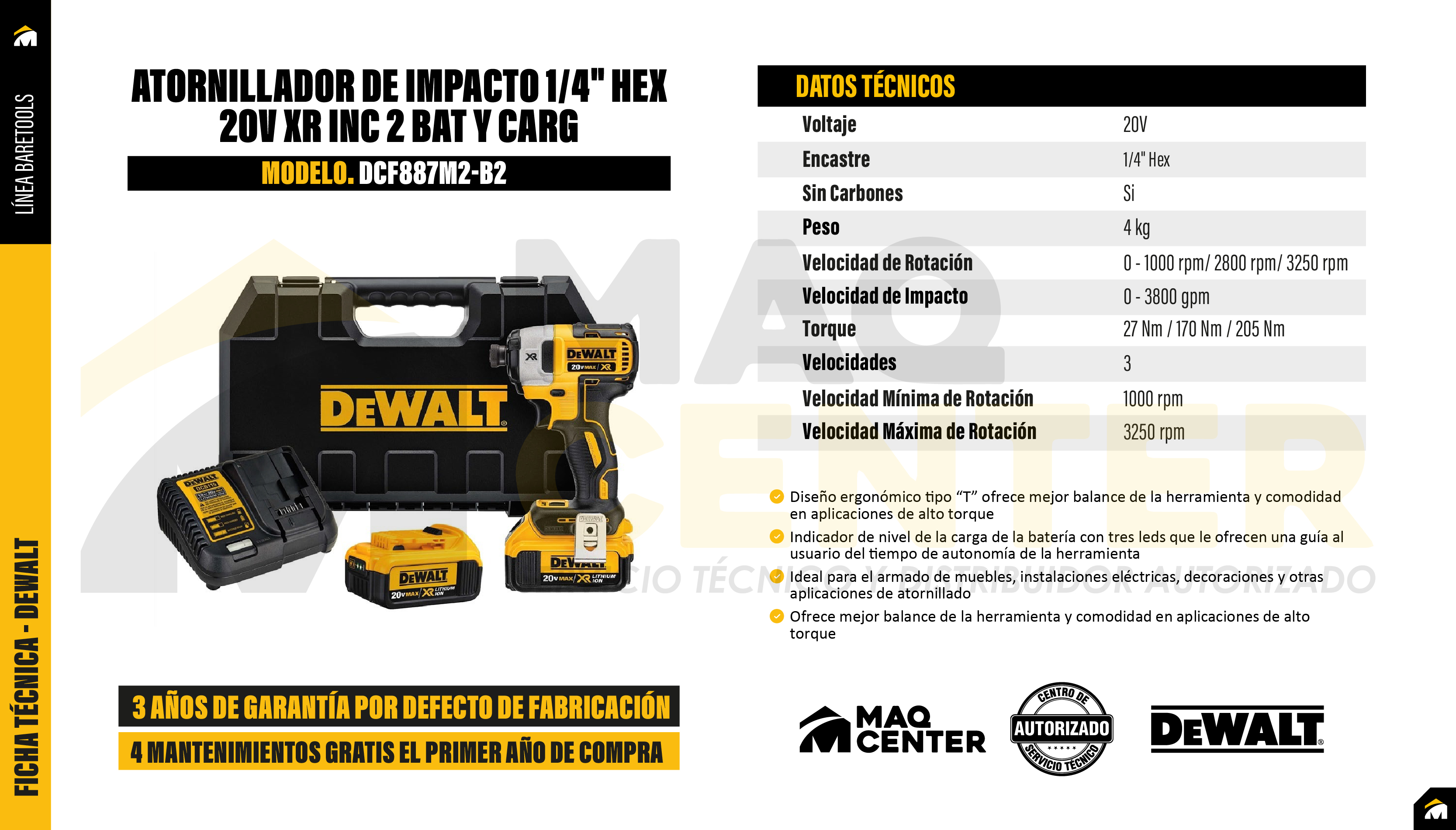 Kit atornillador de impacto 1/4'' 20v + 2bat 4.0ah dewalt dcf887m2-b2