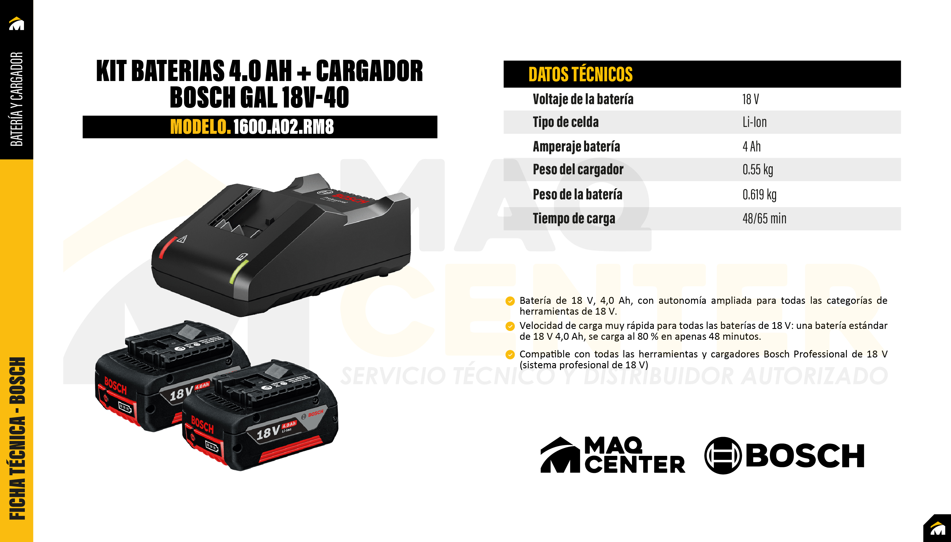 Kit baterias 4.0 ah + cargador bosch gal 18v-40