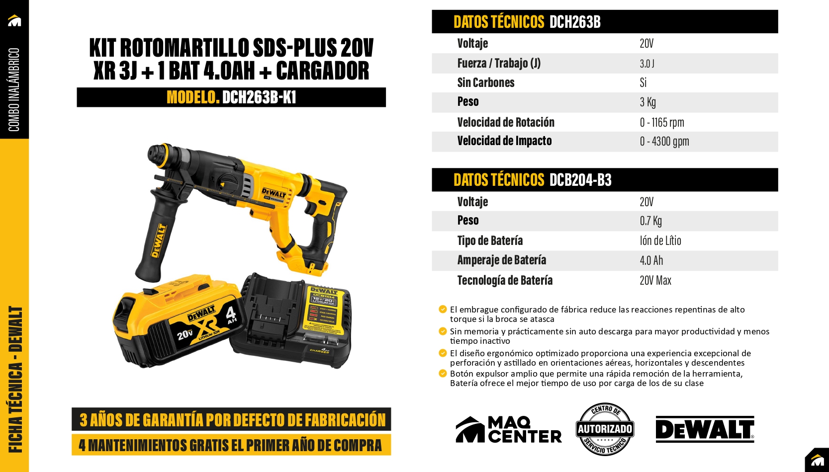 Amplio rango de perforación óptimo entre 1/4 pulgadas. Y 3/4 pulgadas. El embrague configurado de fábrica reduce las reacciones repentinas de alto torque si la broca se atasca. El diseño ergonómico optimizado proporciona una experiencia excepcional de perforación y astillado en orientaciones aéreas, horizontales y descendentes. Velocidad de carga insuficiente para una velocidad de aplicación rápida LED brillante para ayudar a iluminar áreas de trabajo oscuras. El sistema SHOCKS-Active Vibration Control reduce la vibración en los mangos, en comparación con los martillos sin esta característica. Motor sin escobillas para mayor duración y durabilidad.