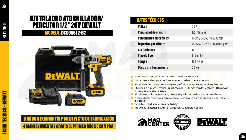 Incluye: (2) Baterías 20V Max de 3.0 Ah (1) Cargador (1) Maleta plástica