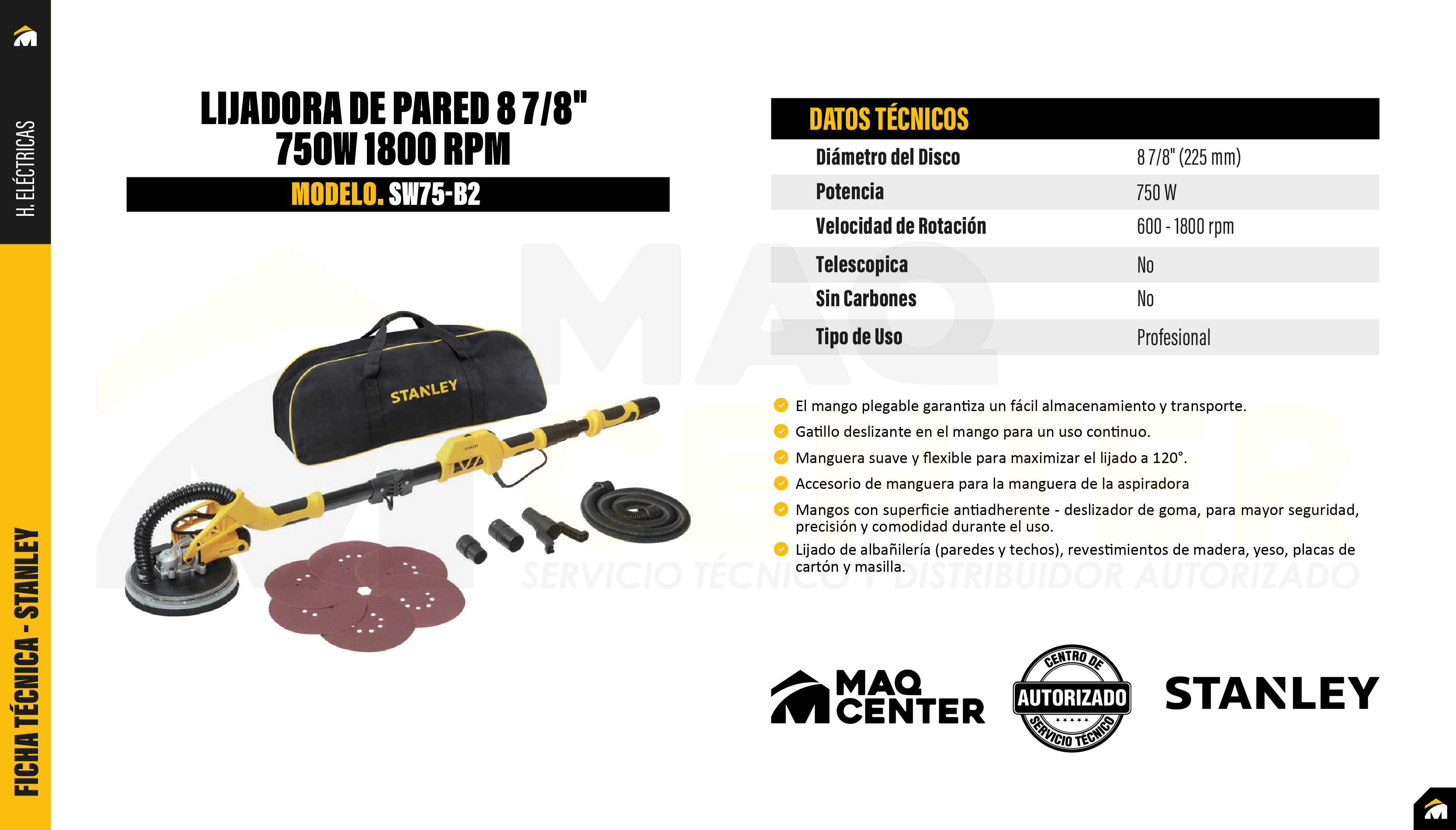 Lijadora de pared 8 7/8" 750w 1800 rpm stanley sw75-b2