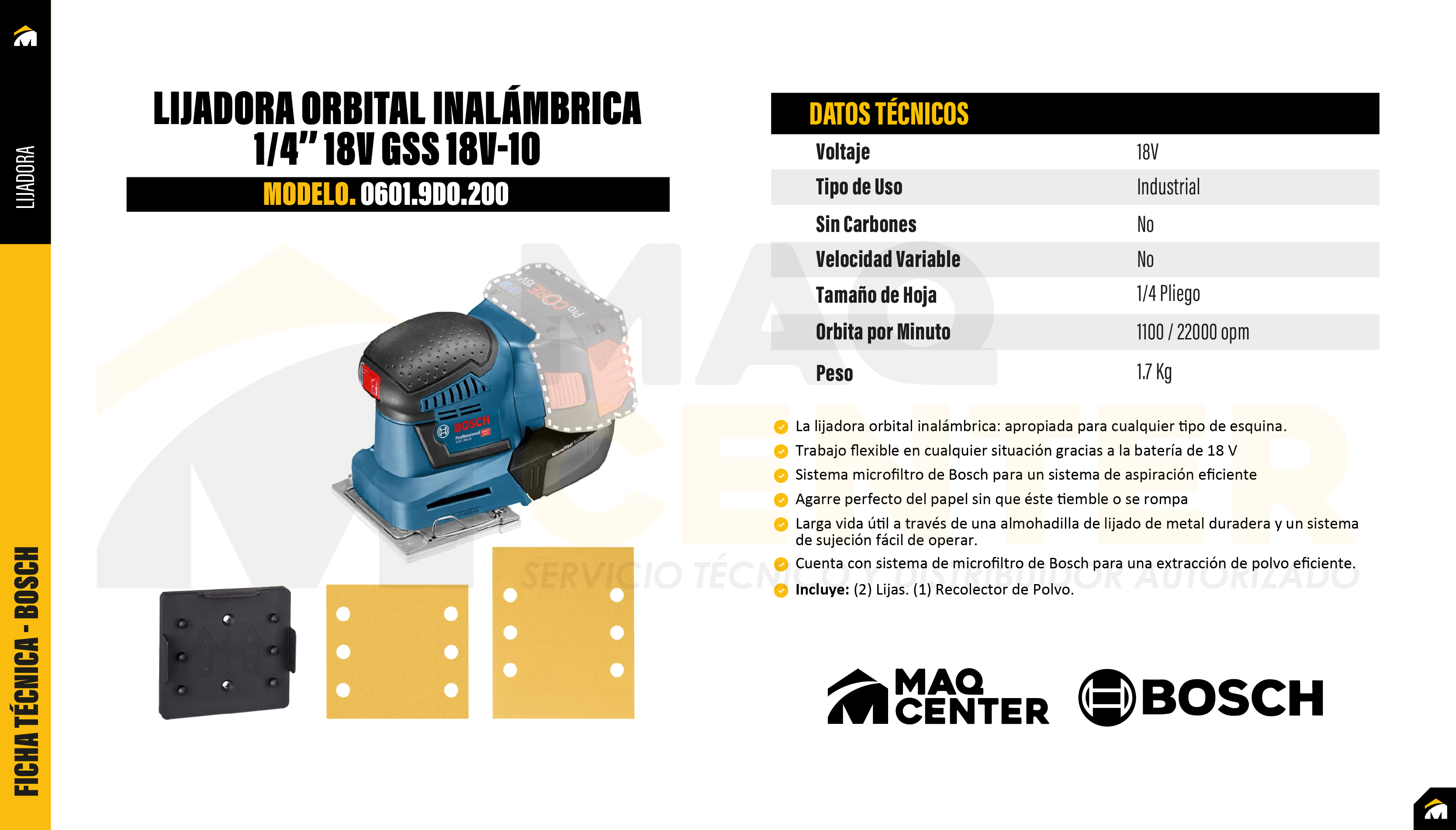 Incluye: (2) Lijas (1) Recolector de Polvo No incluye baterias ni cargador