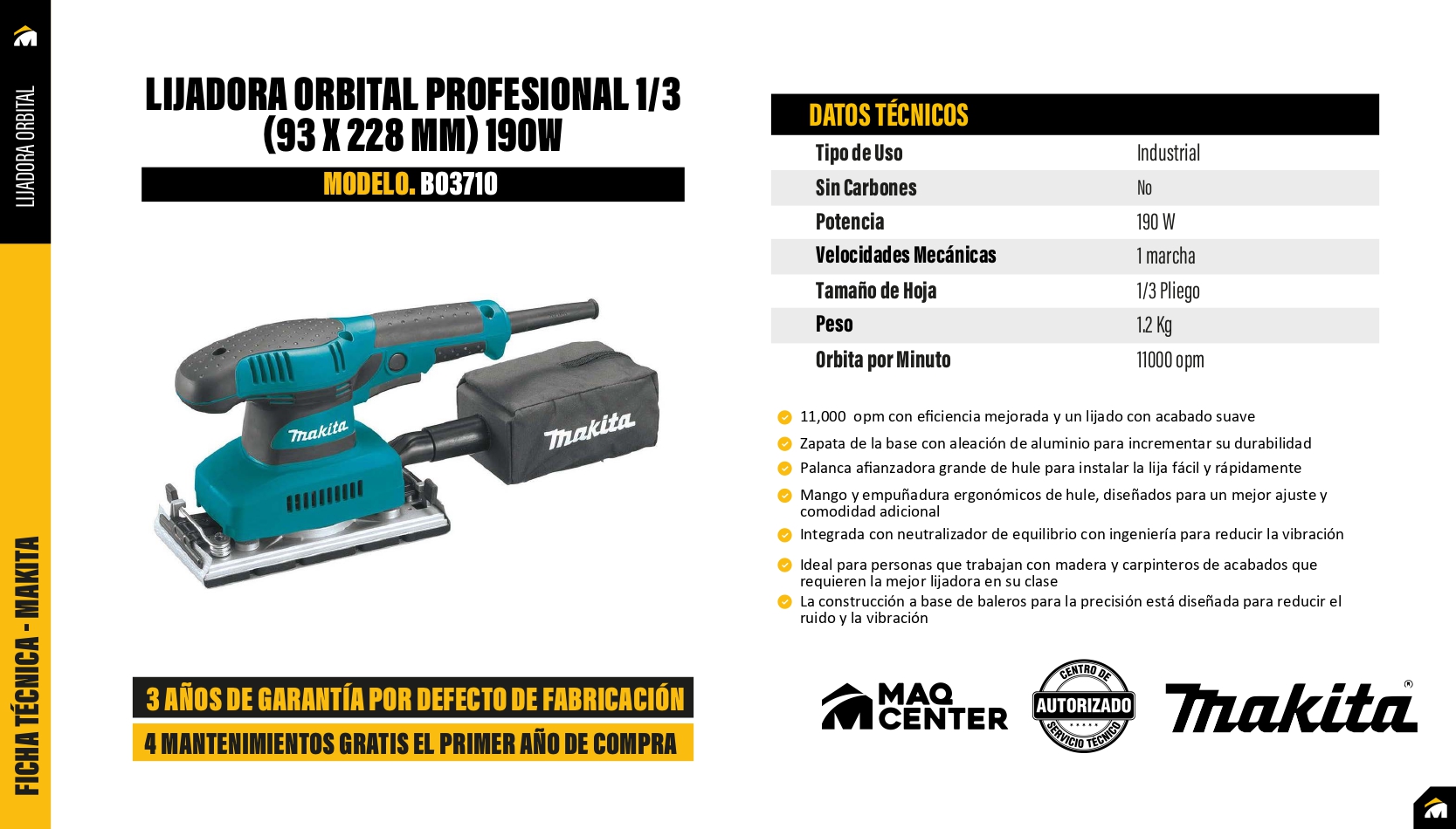 Lijadora profesional 190w 1/3 hoja - b03710 makita