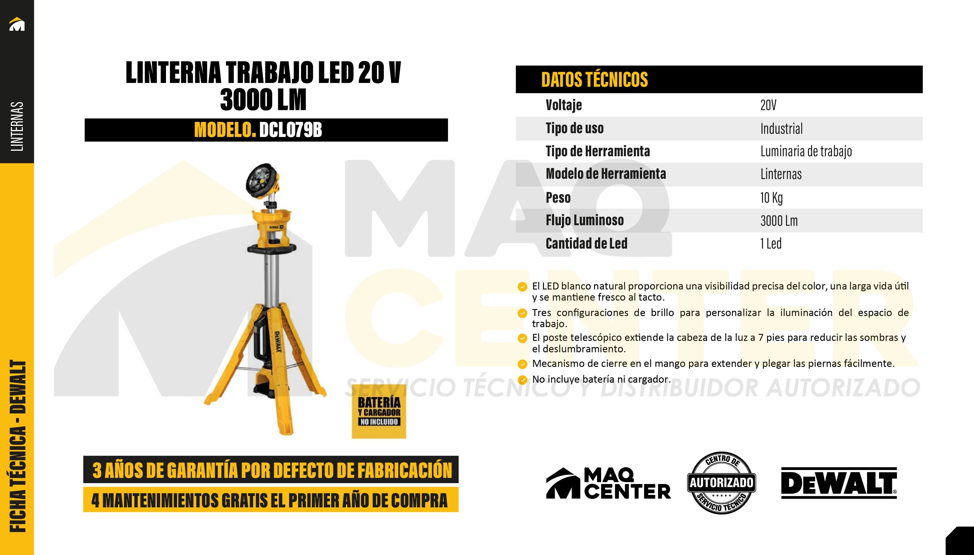 Incluye: (1) Luz de trípode DCL079. La batería y el cargador se venden por separado.