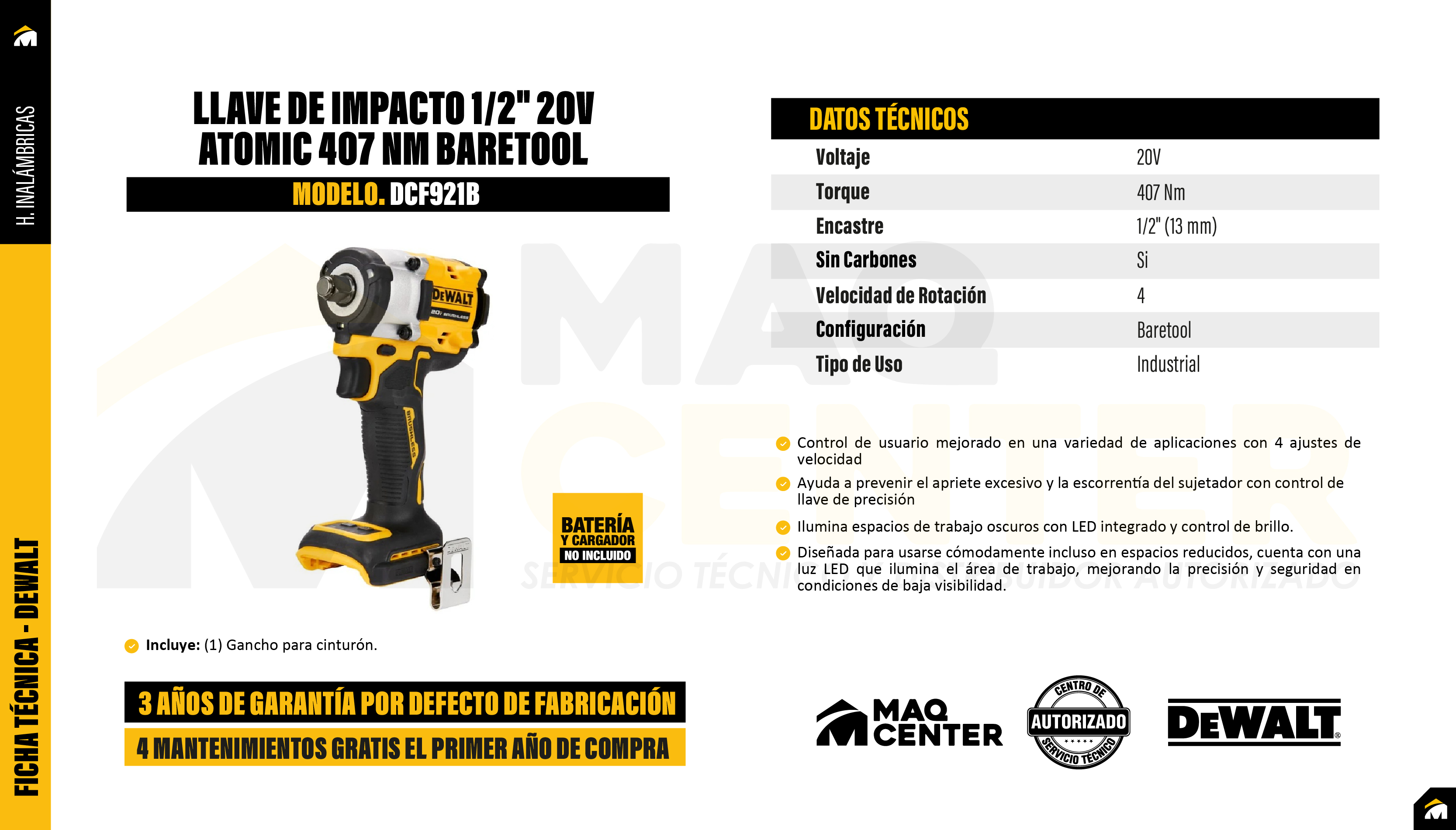 Torque de Apriete de 406 Nm: Potencia de rango medio en un diseño ultra compacto, con un torque de "rompimiento" de hasta 610 Nm.