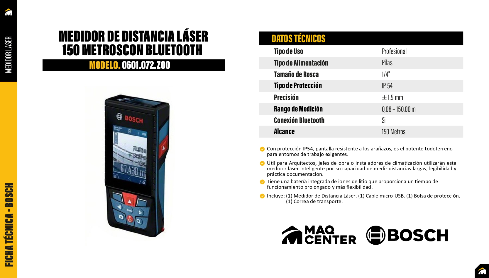 Medidor láser bosch glm 150-27 c professional (150 m) – 0601.072.z00