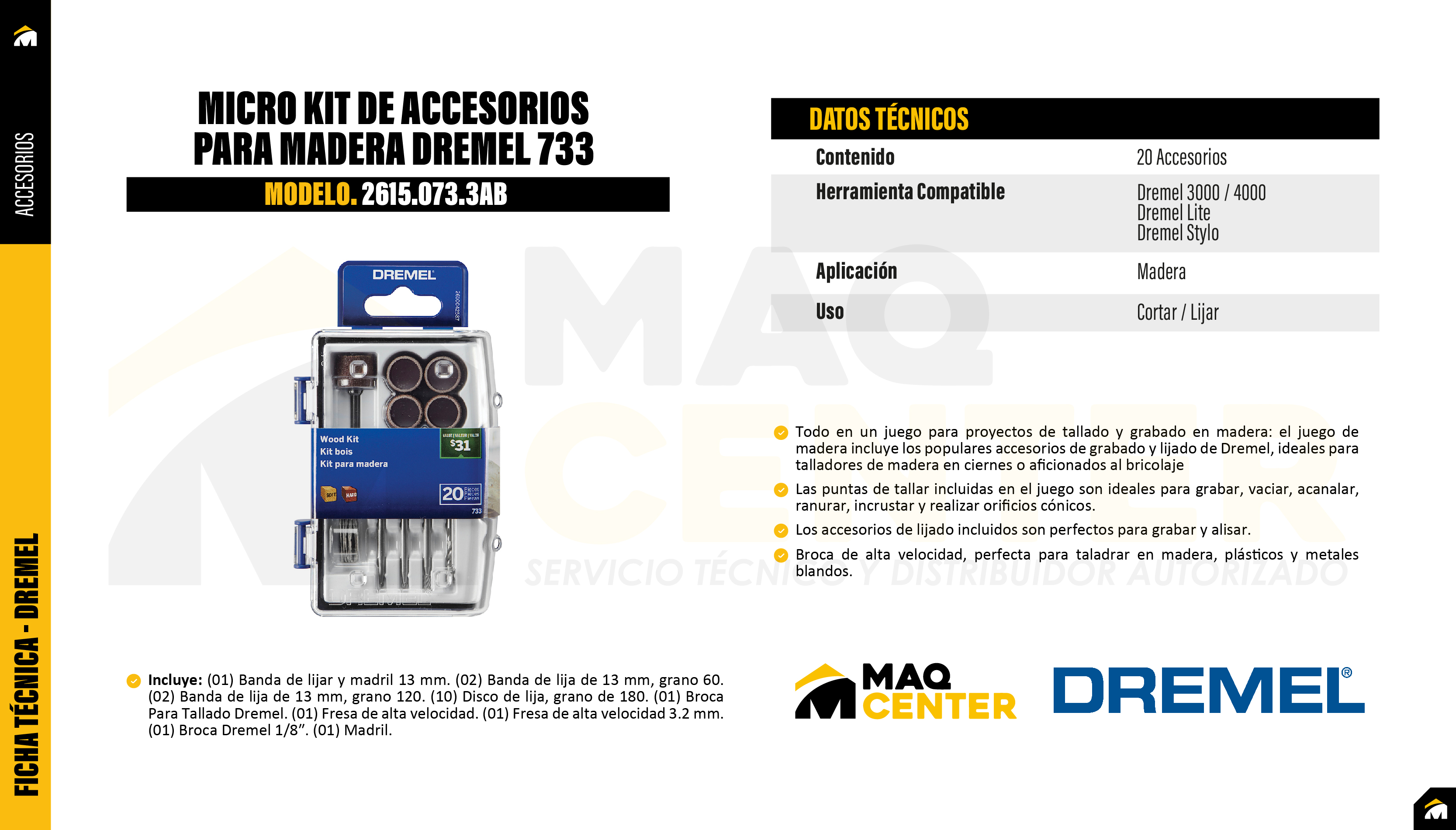 Micro kit de accesorios para madera dremel 733 2615.073.3ab