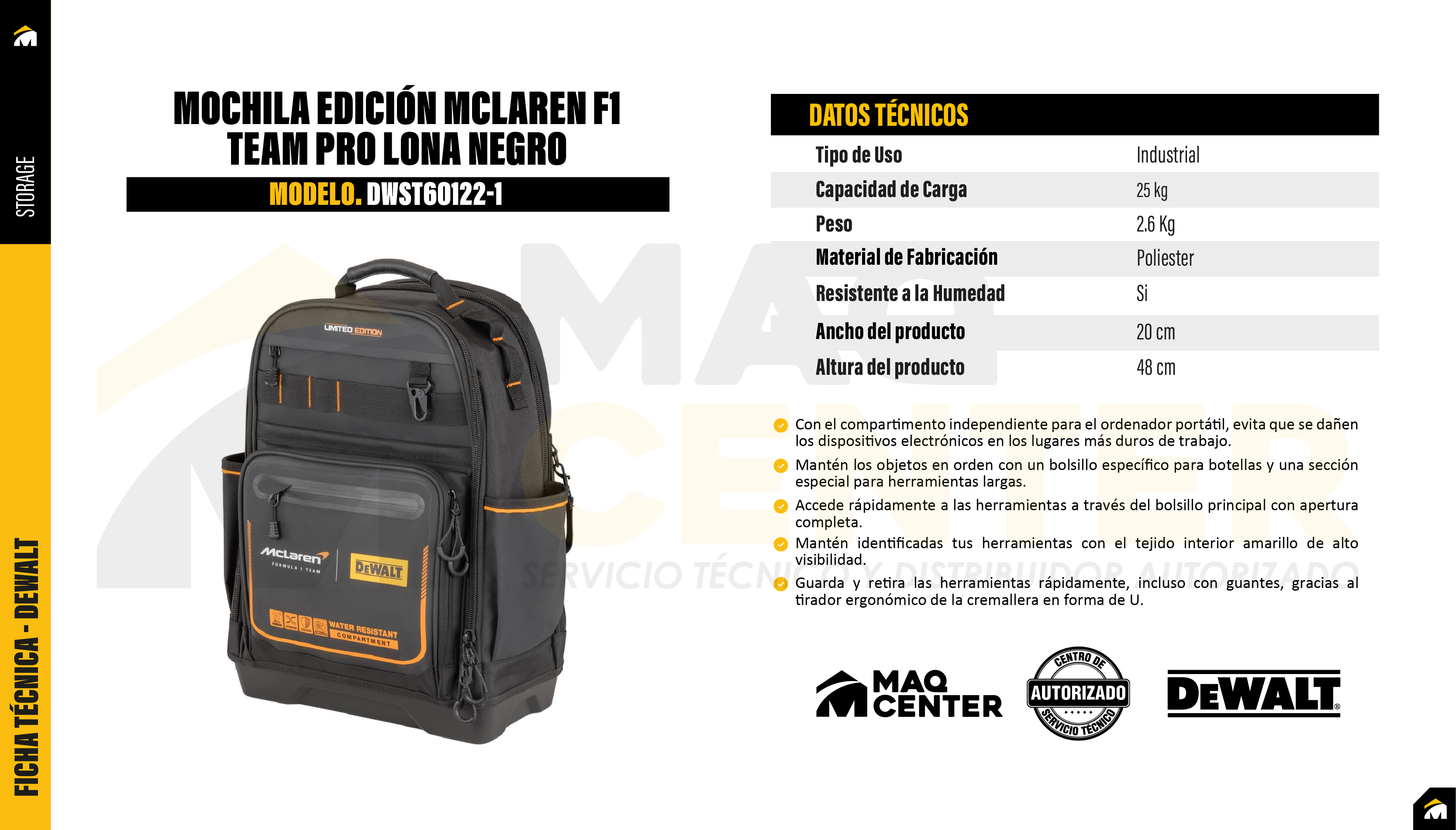 Mochila edición mclaren f1 team pro lona negro dewalt dwst60122-1