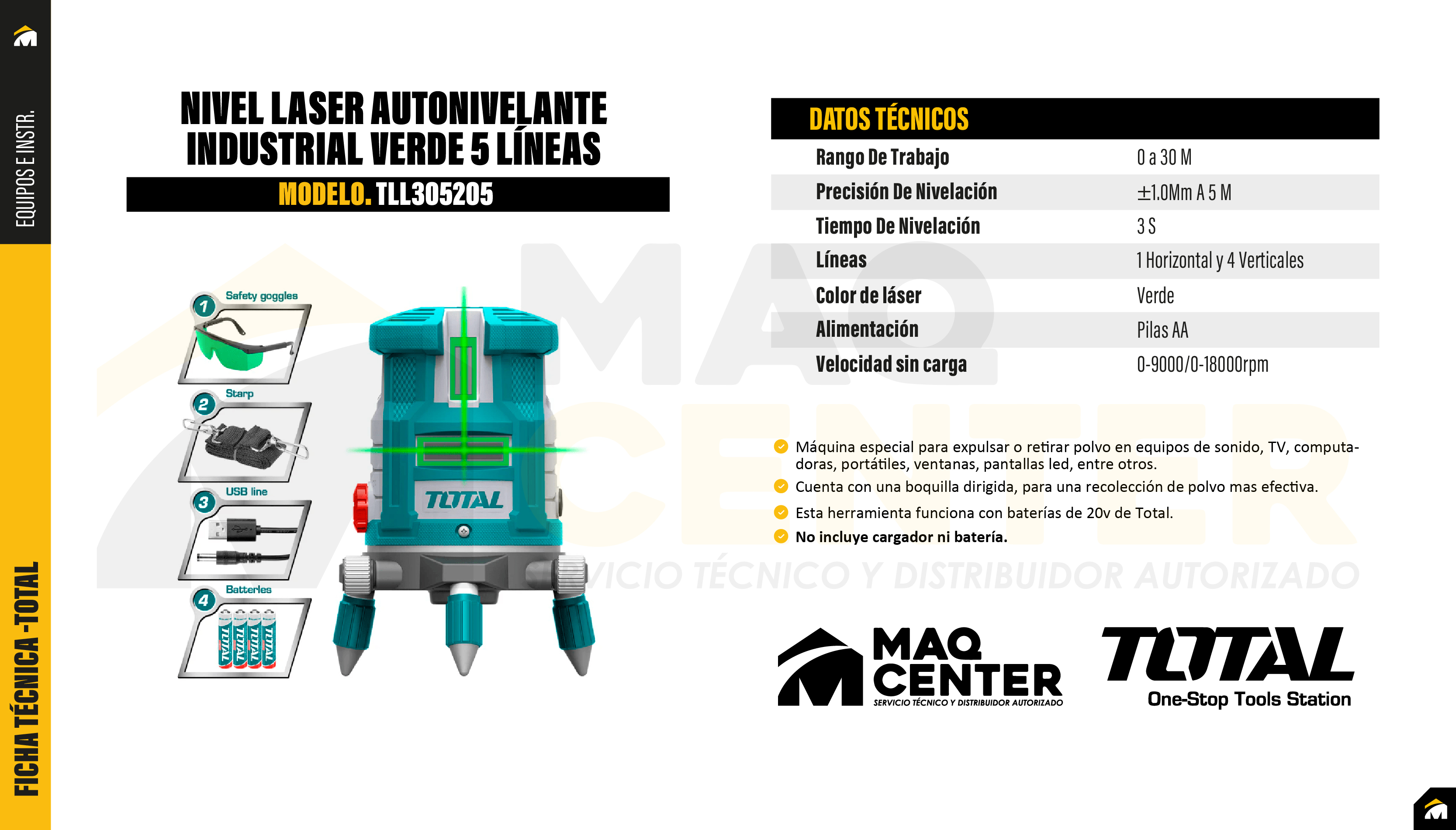 Nivel laser autonivelante industrial verde total tll305205