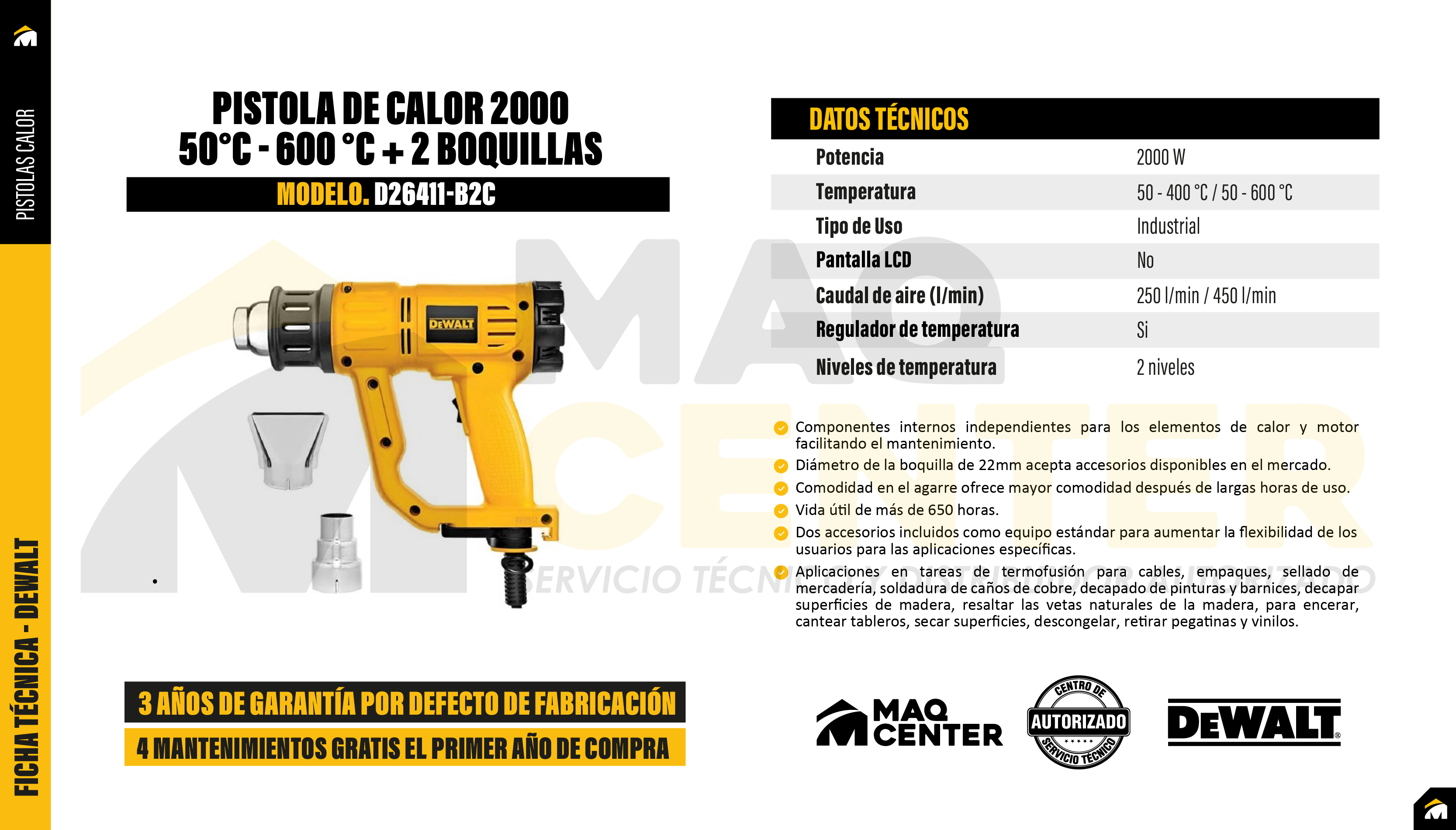 Pistola de calor 2000w 50°c-600°c dewalt d26411-b2