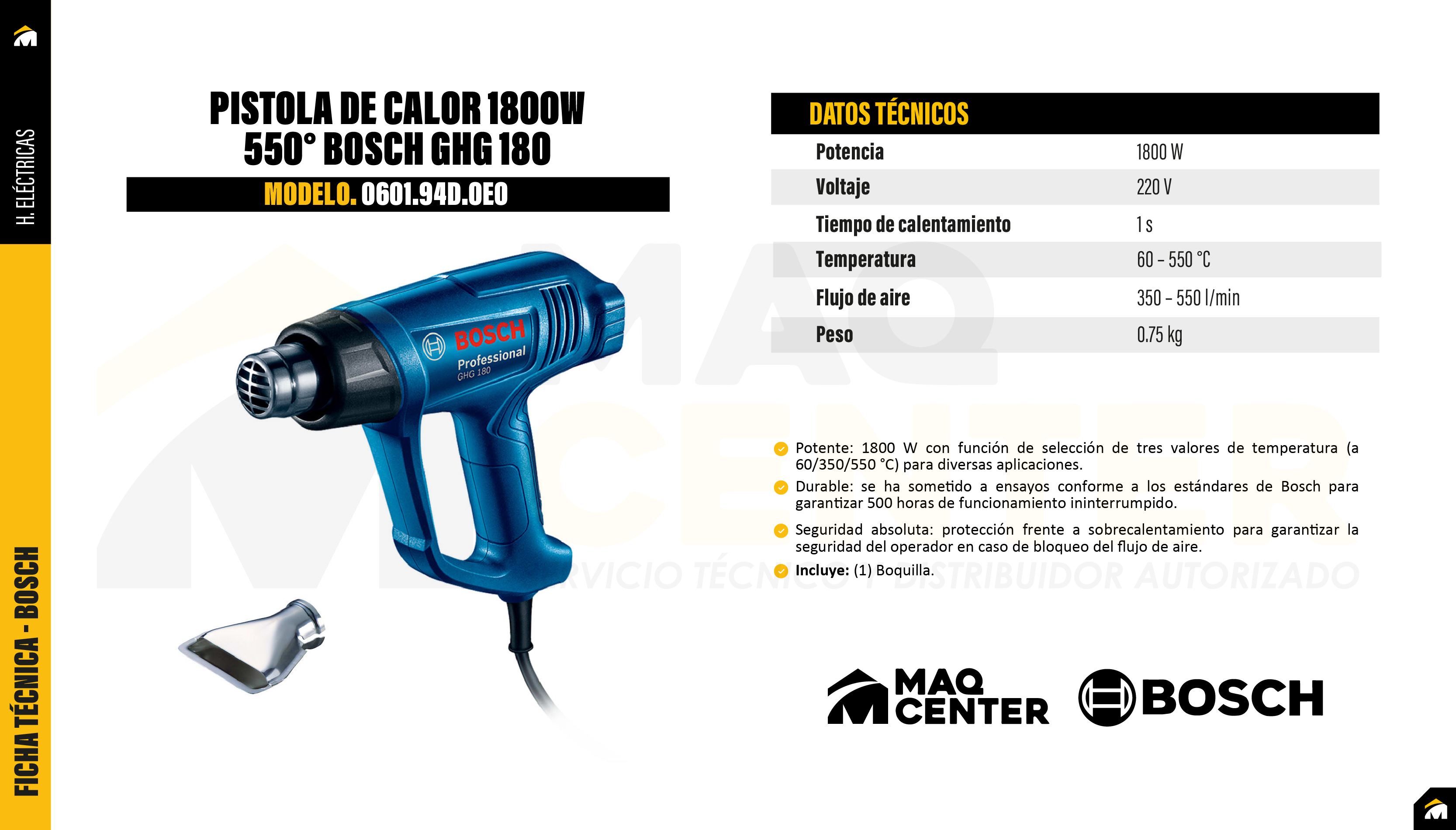 Pistola de calor bosch 1800w 550°c ghg 180 - 0601.94d.0e0