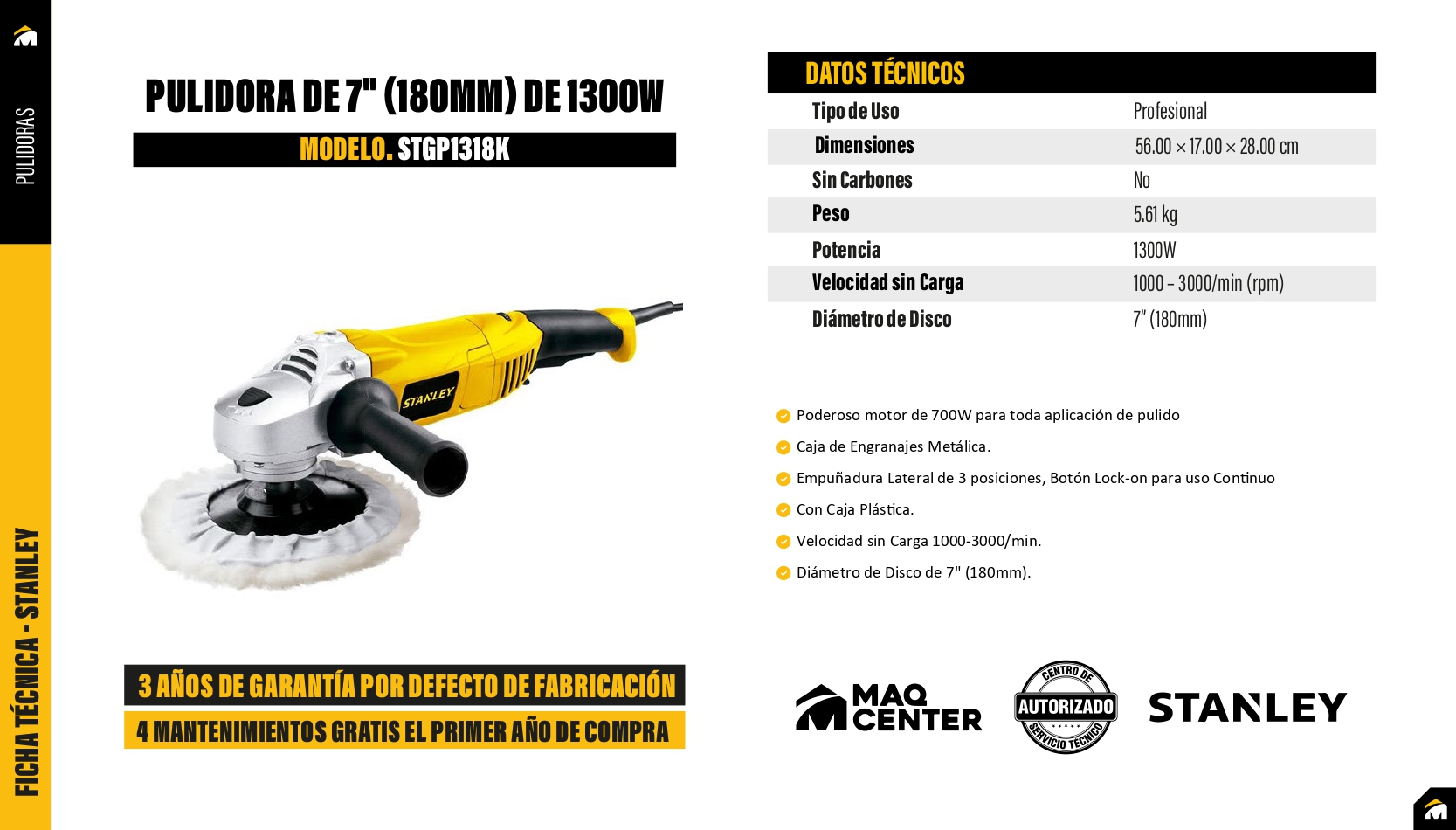 Esta magnífica pulidora cuenta con un motor de 1300 watts, caja de engranajes metálica y botón Lock-on para uso continuo.