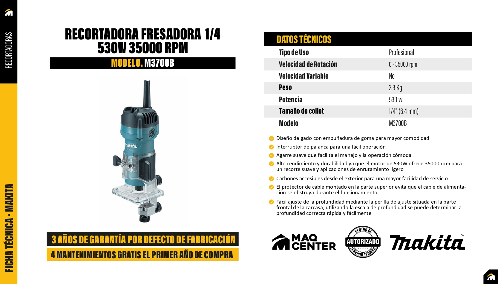 Recortadora 1/4 530w 35000 rpm makita mt m3700b