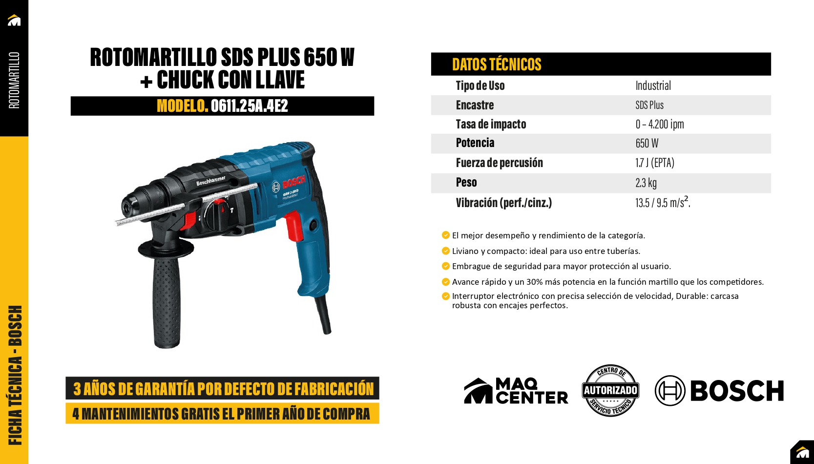 Rotomartillo sds plus 650 w bosch gbh 2-20 d + chuck con llave
