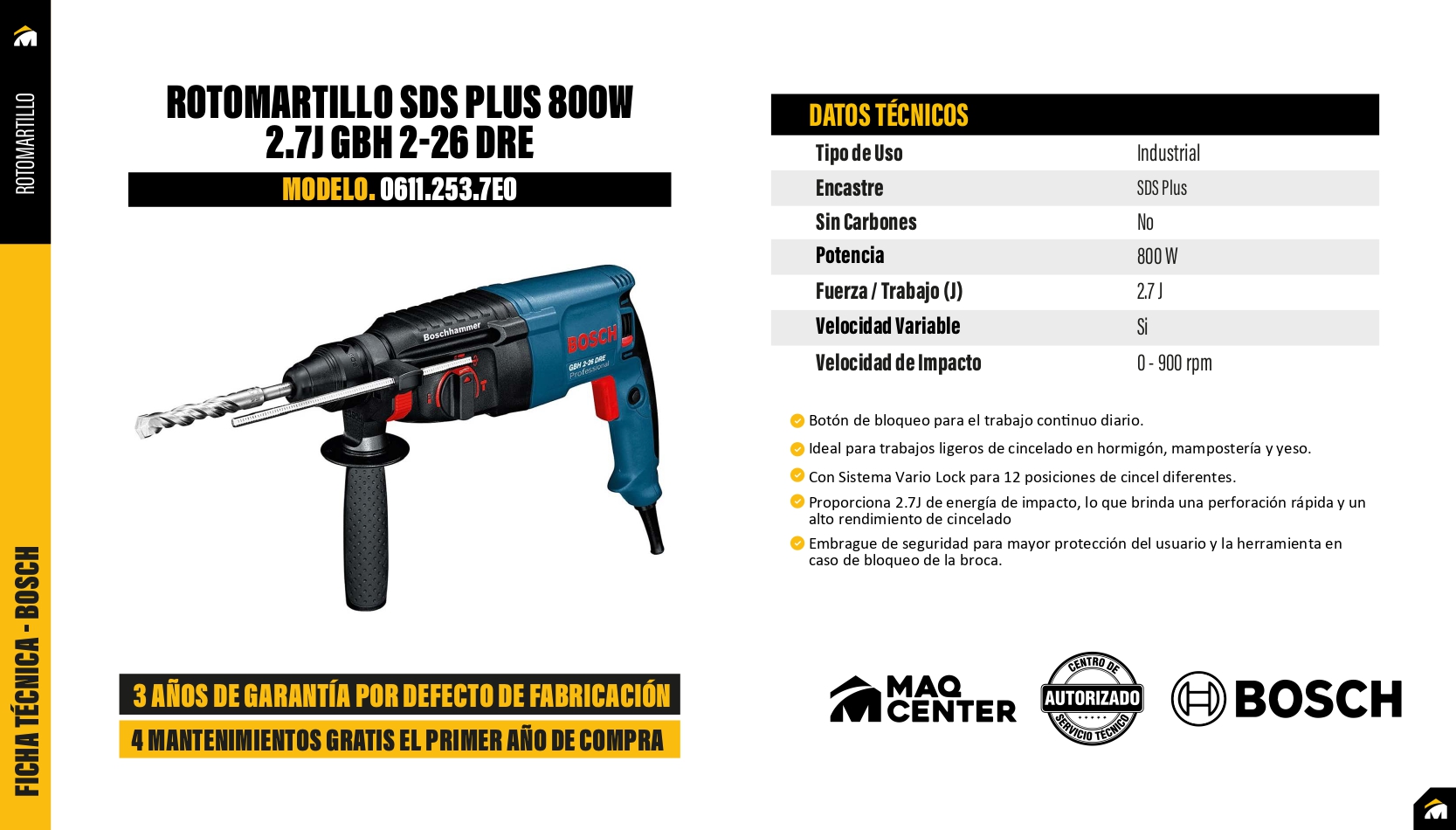 Rotomartillo sds plus 800 w. bosch gbh 2-26 dre