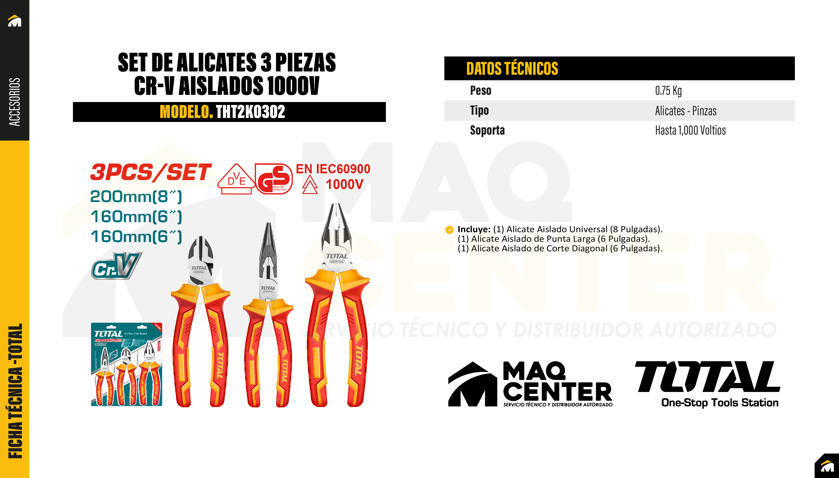 Set de alicates 3 piezas cr-v aislados 1000v tht2k0302 total
