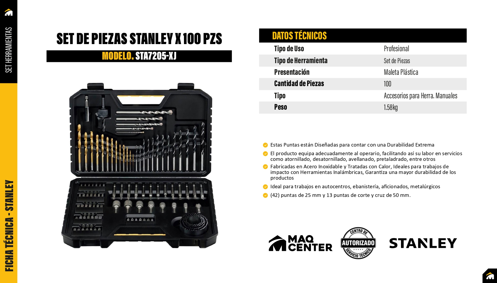 Con una variedad de accesorios para realizar las aplicaciones más comunes, el set combinado multiporpósito STANLEY garantiza el mayor rendimiento, practicidad y eficiencia al realizar todo tipo de trabajos de perforación en muro, madera, metal, atornillado entre otros. Los estuches están diseñados para mantener los diferentes accesorios organizados y a la mano para el desarrollo de todo tipo de aplicación.