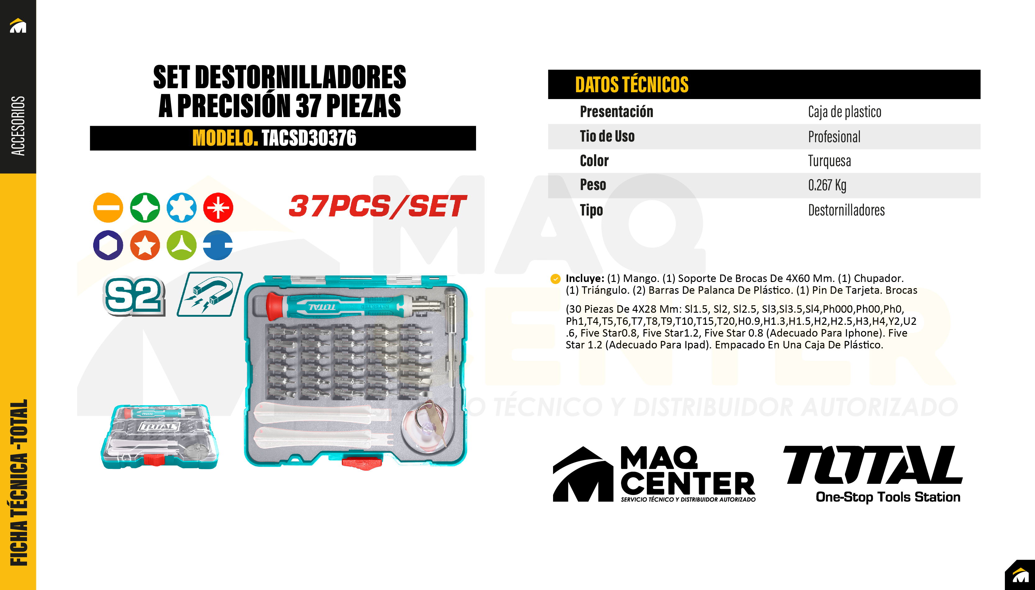 Set destornilladores a precisión 37 piezas tacsd30376 total
