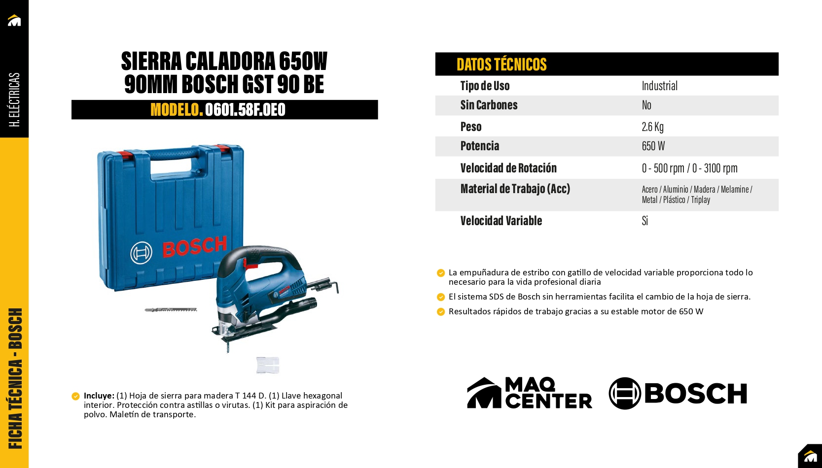 Sierra caladora bosch 650w 90mm gst 90 be - 0601.58f.0e0