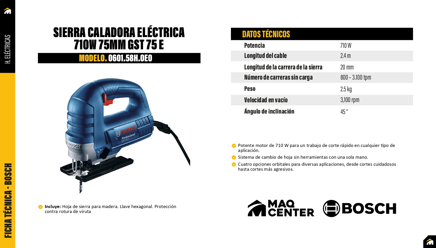 Sierra caladora bosch 710w profesional gst 75 e - 0601.58h.0e0