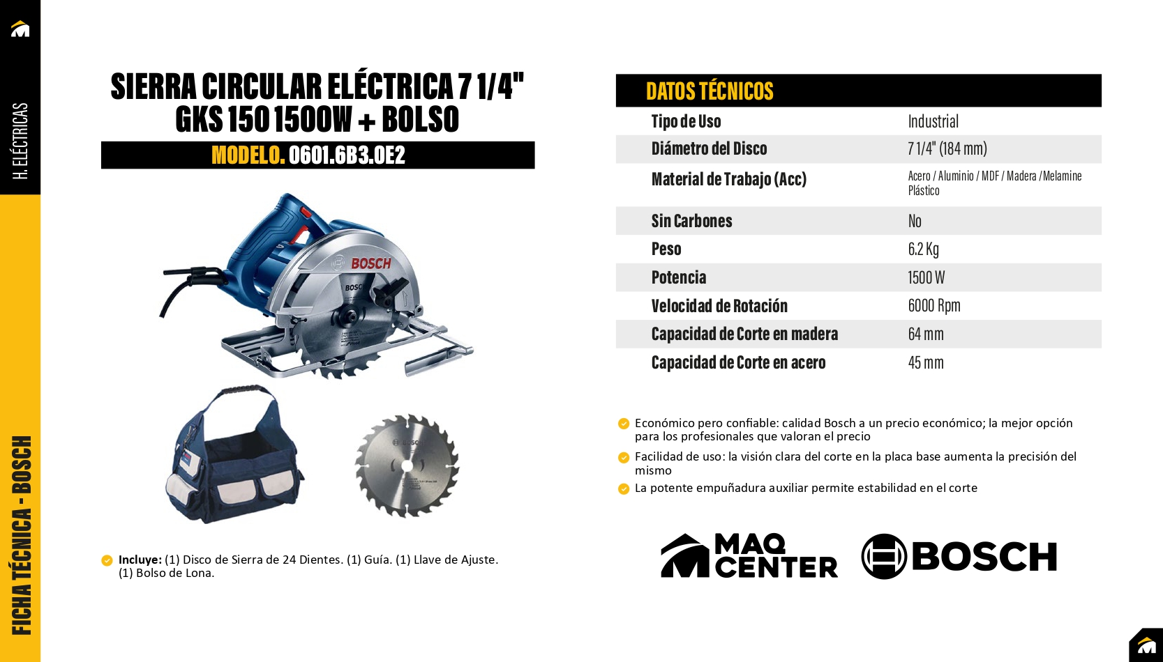 Sierra circular bosch 7 1/4" 1500w gks 150 + bolso - 0601.6b3.0e2