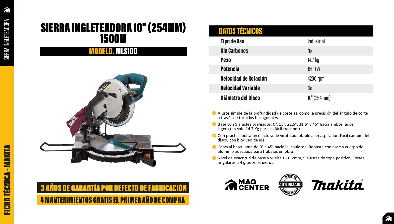Sierra ingleteadora 10" 1500w mls100 - makita