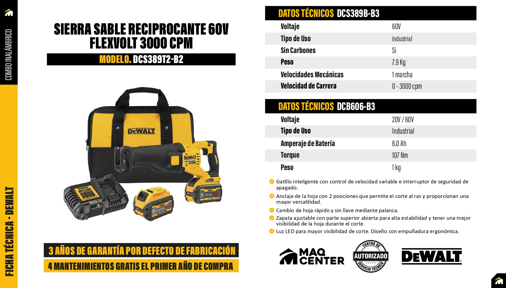 Sierra sable reciprocante 60v flexvolt dcs389t2-b2 dewalt
