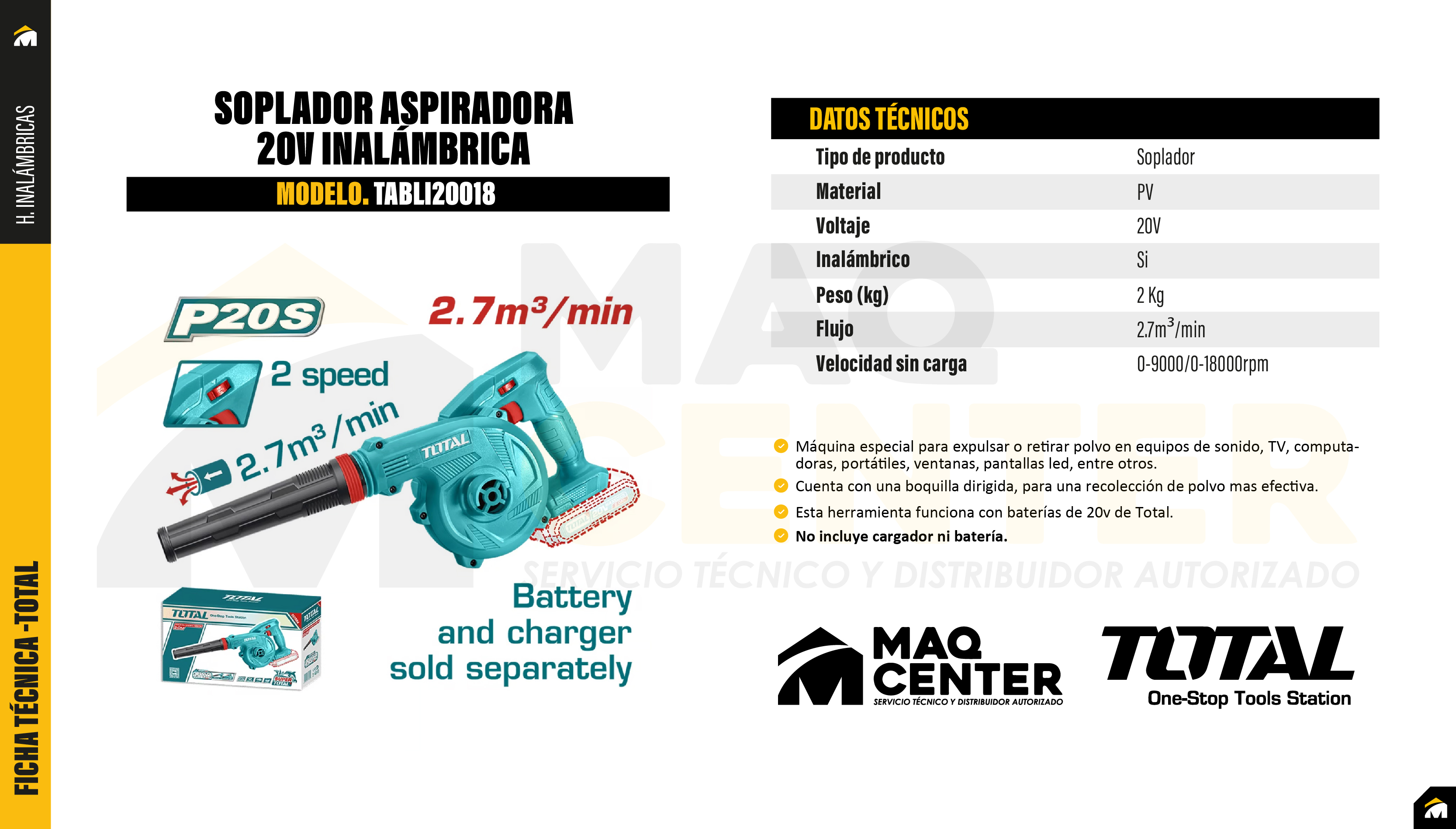 Esta herramienta funciona con baterías de 20v de Total.