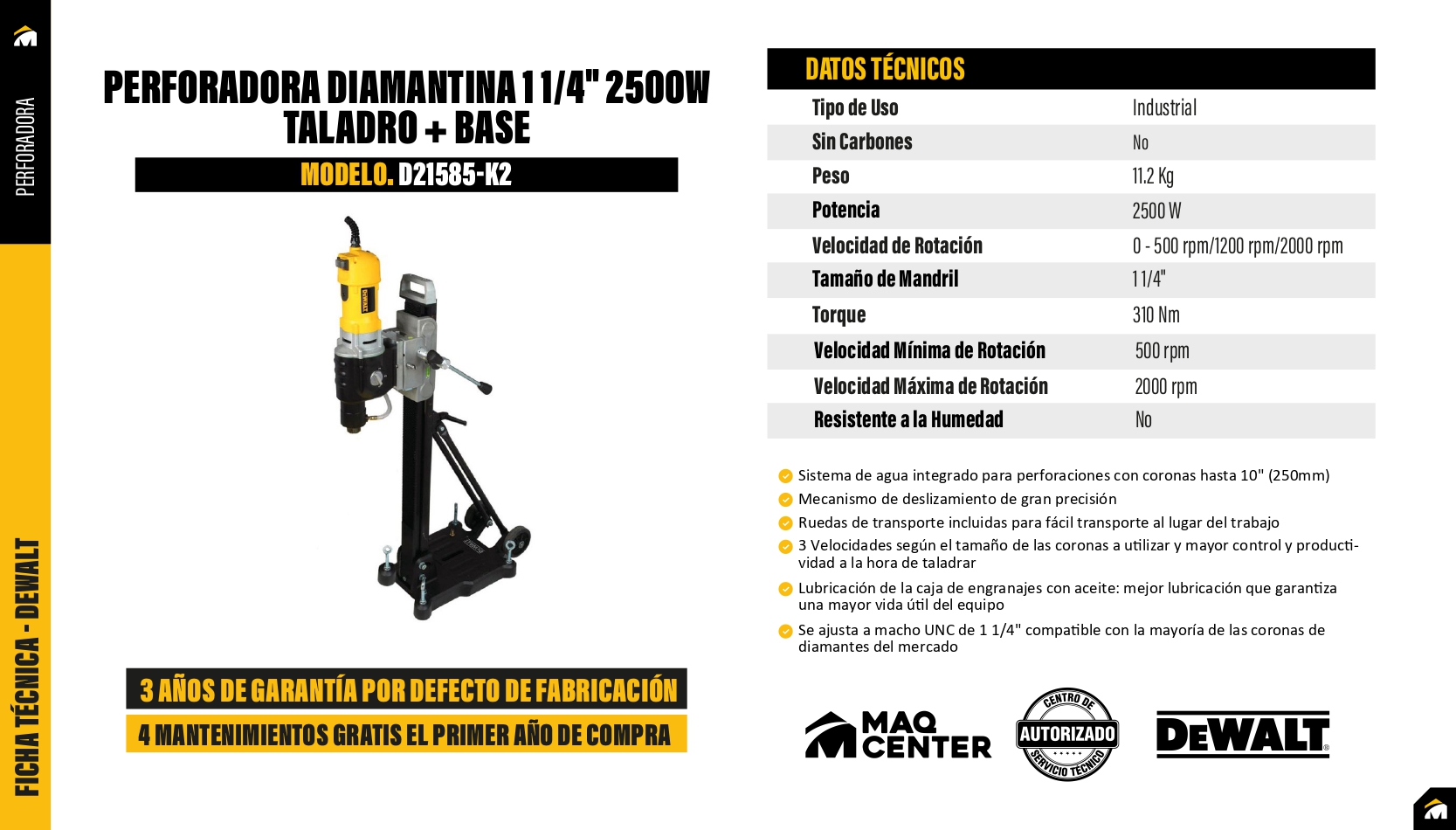 Taladro de corte diamantado de 2500w dewalt d21585