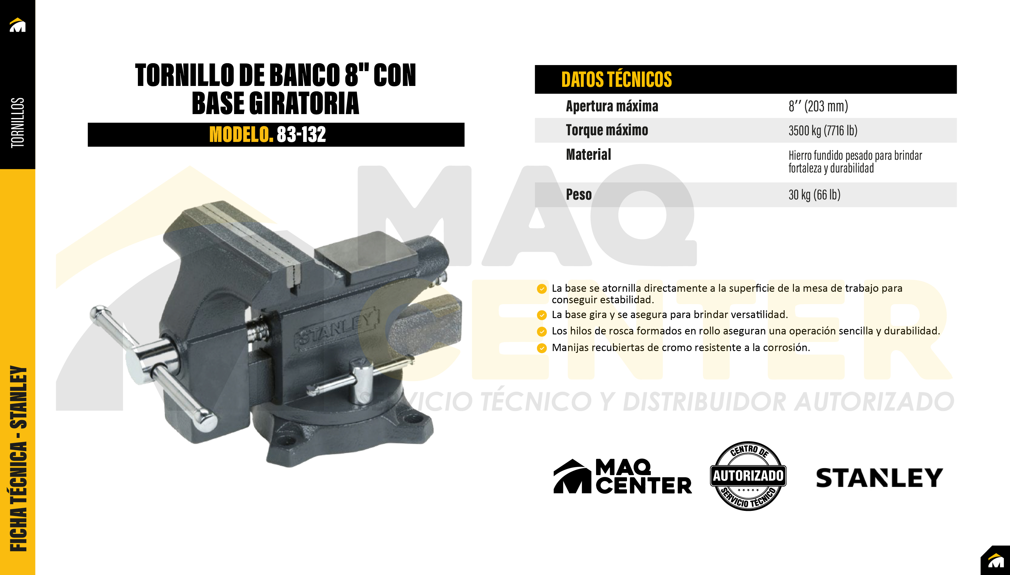 Tornillo de banco 8'' con base giratoria stanley 83-132