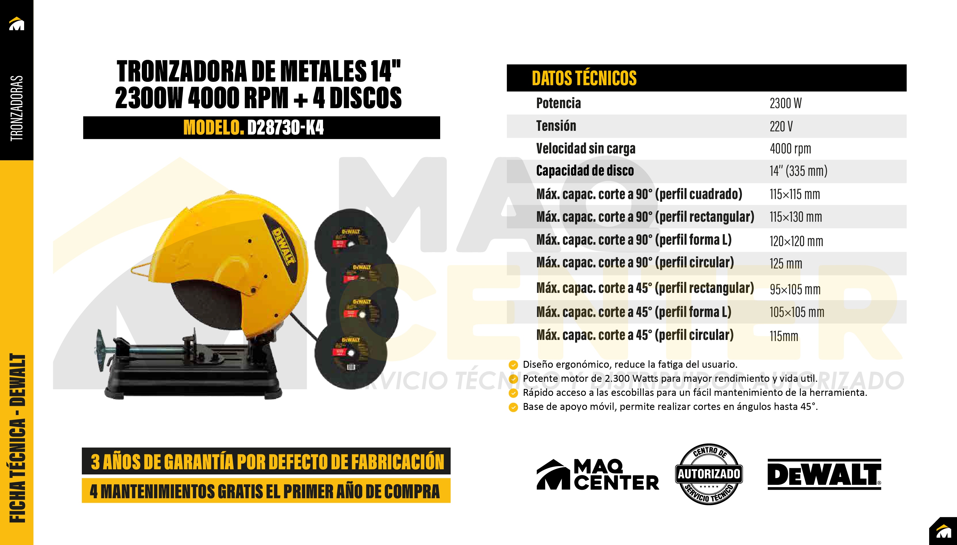 Potente motor de 2300W para cortes rápidos y precisos en metal. Incluye 4 discos de corte DEWALT, ideales para comenzar a trabajar de inmediato. Diseño robusto con sistema de sujeción rápida y protección ajustable para mayor seguridad. Perfecta para trabajos intensivos en talleres, herrerías y obras de construcción.