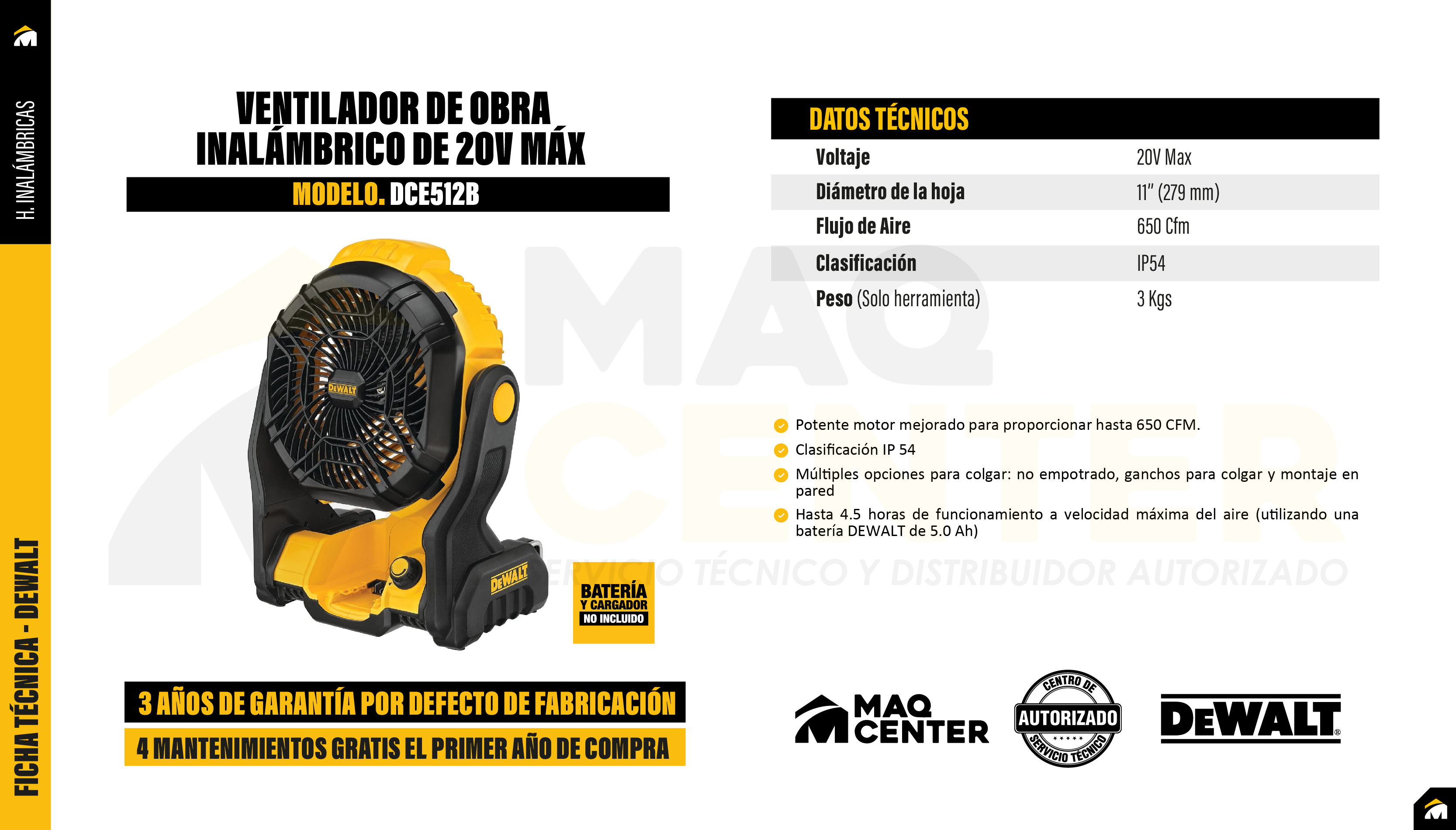 Ventilador de obra inalambrico de 20v máx dewalt dce512b